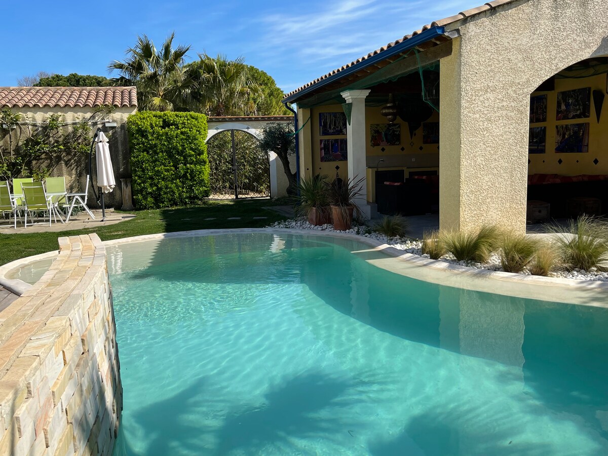 Maison indépendante, classée 3*, parfaitement équipée sise dans un emplacement unique proche de la mer et de Montpellier (Bus + Tramway) elle convient parfaitement pour 2 ou 4 personnes. Baladez-vous dans une Nature préservée. En lien avec un guide de pêche nous pouvons vous proposer une activité pêche (en étang ou en mer) contactez nous pour la mise en relation avec le capitaine ! ____________________________