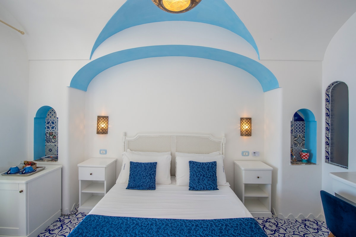 Bright and airy double room with stunning sea view and a terrace for unforgettable sunsets. A delicious breakfast buffet is included every morning. Relax by the pool or enjoy a drink at our Sunset Bar at dusk. Just 300 m from Anacapri bus terminal, perfect for reaching Capri, Marina Grande, Marina Piccola and Punta Carena Lighthouse. 24/7 lobby, always ready to share the best tips to explore the island.