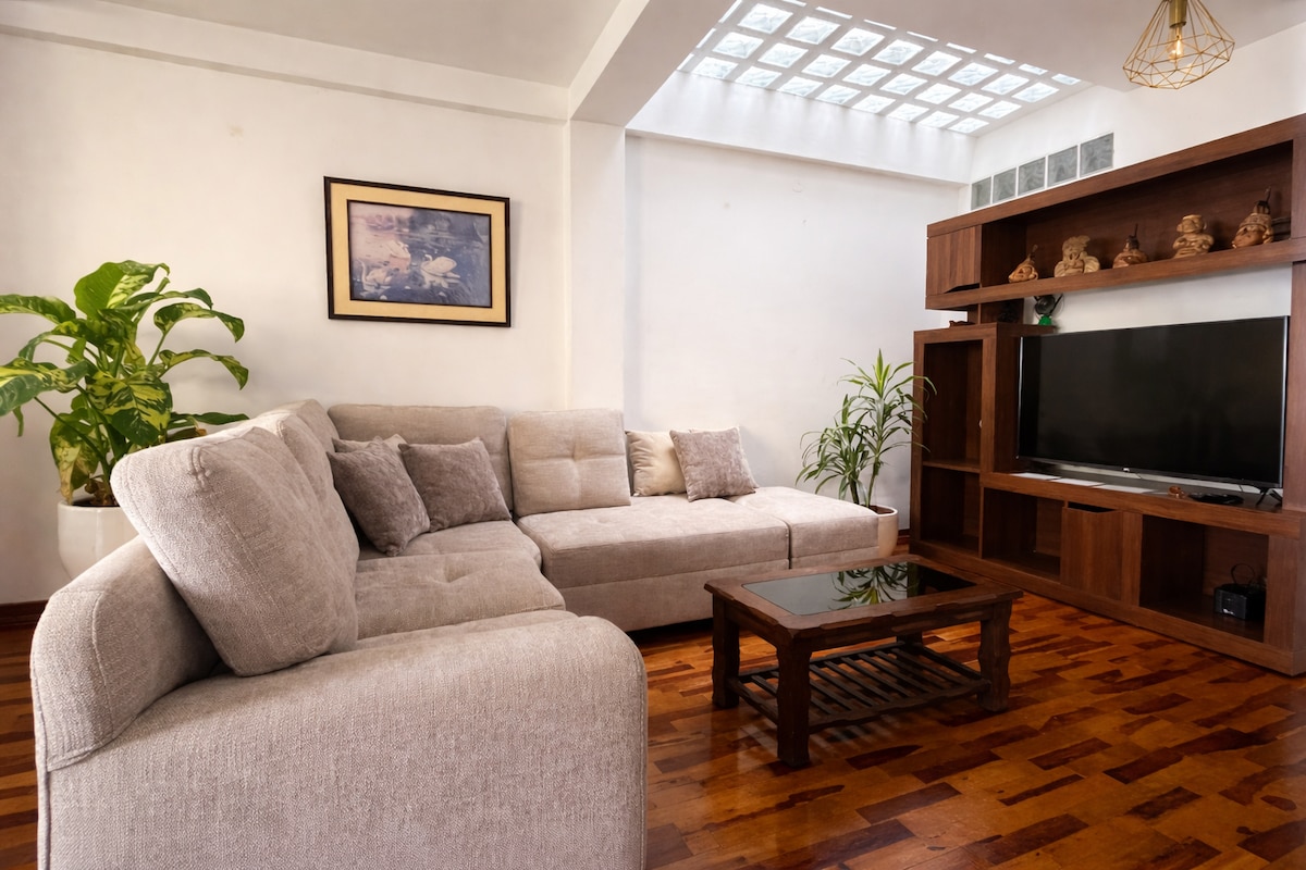 ✨ Appartement confortable de 93 m² à San Andrés, Trujillo ✨ Au 3ème étage, dans un quartier sûr🛡️, à seulement 3 pâtés de maisons de la Plaza de Armas. 🛏️ 6 voyageurs | 🏡 3 chambres | 🚿 2 salles de bains 🛋️ Salon-salle à manger avec Smart TV + Netflix 📺, 🌐 Internet rapide, 🍳 Cuisine équipée, 🧺 Linge et eau chaude. Proche des cafés, restaurants, supermarchés et transports en commun🚖🚌. Parfait pour votre séjour à Trujillo !
