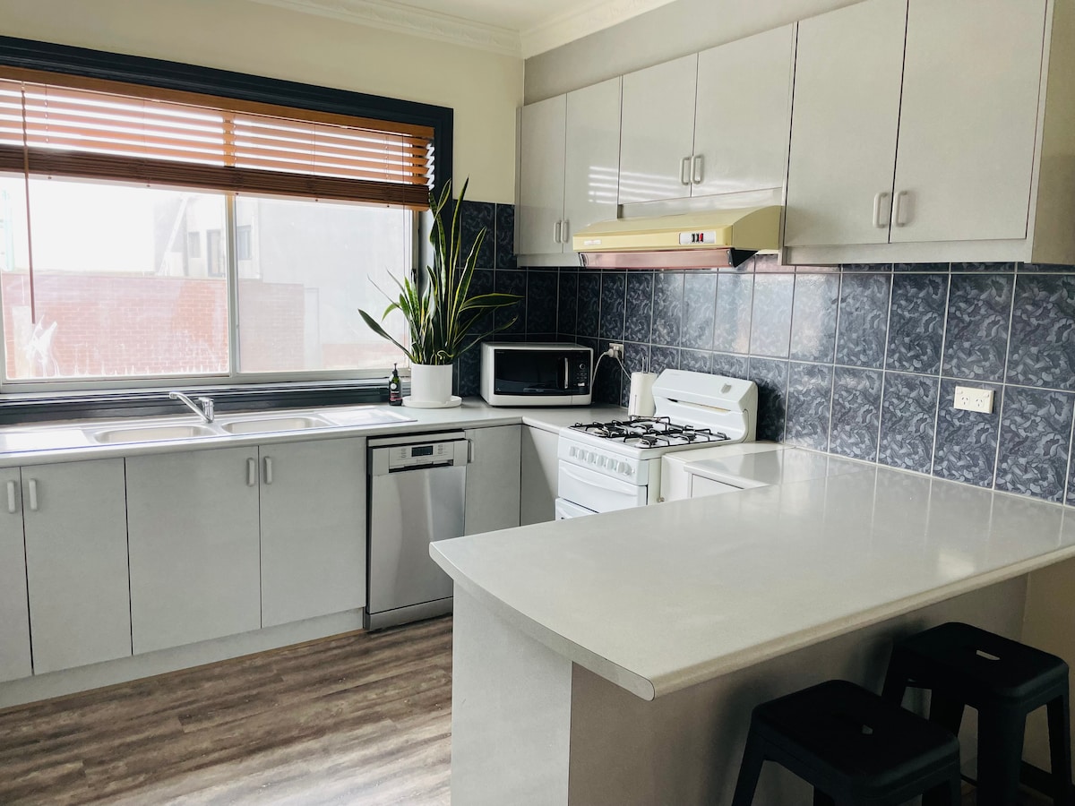 Remontez le temps dans une maison au sommet d'une colline avec vue sur la ville à travers des baies vitrées. La brique apparente et l'utilisation extensive du bois naturel maintiennent une atmosphère du milieu du siècle, rehaussée par des meubles d'époque et des planchers de bois résineux étincelants partout. Le manuel de la maison fournit des informations sur Jack's, comme nous appelons notre maison. Nous n'accueillons pas les voyageurs accompagnés d'animaux de compagnie et il n'est pas acceptable de fumer dans aucune partie de la maison et de la propriété. Si ces règles ne sont pas à votre goût, ne réservez pas. Jack's Place est une maison originale conçue par un architecte des années 1960. Une chambre principale avec un accès direct à la salle de bain (en-suite sauf qu'elle est la seule !). La deuxième chambre dispose d'un plancher en jarrah et d'un mur en briques apparentes. Le salon dispose d'une vue unique sur la ville, surtout la nuit. Cuisine fonctionnelle et buanderie, climatisation et chauffage. Les conditions de location sont pour toute la maison, mais si un couple réserve, il est prévu qu'une seule chambre soit utilisée. Lors de la réservation, il est préférable de préciser si les deux chambres sont nécessaires. Sinon, nous ne faisons pas le deuxième lit. Jack's Place est une résidence en briques indépendante avec son propre espace de stationnement. Il y a une cour fortifiée et une pelouse/jardin avant (qui n'est pas encore entièrement développé). Cate et moi vivons derrière Jack's Place et les deux propriétés partagent une allée. Naturellement, l'allée doit être dégagée à tout moment. Plus qu'heureux d'être contacté pour toute question relative à Ballarat en général, à la nourriture, au vin et aux activités. Cette maison de 1962 se trouve à Golden Point, un ancien quartier de la ville de Ballarat, à environ 125 kilomètres à l'ouest de Melbourne. De nos jours, l'architecture de la région varie des habitations des années 1860, des bungalows californiens et des résidences modernes à haute densité. La rue principale de Ballarat est Sturt St. Elle est à environ dix minutes à pied du centre-ville et à moins de dix minutes des grands supermarchés. Le stationnement en ville est payant via un parcomètre toute la semaine. En bordure du quartier central des affaires, le stationnement est gratuit. Le stationnement autour de la zone des restaurants d'Armstrong St est difficile. Je vous conseille de marcher jusqu'au dîner et de prendre un Uber pour rentrer. Les bus locaux sont déroutants. À seulement quelques minutes se trouve The Grapes Hotel, sympathique et fiable. Le temps à Ballarat peut être variable. Je n'ai aucun contrôle sur la météo ! Nous sommes perchés à environ 375 mètres d'altitude, froid en hiver et chaud en été. Les nuits d'été ont tendance à être fraîches. Pour garder la maison au chaud et vous mettre à l'aise, tirez les rideaux et allumez le chauffage. Il y a un panneau chauffant électrique disponible dans la maison. Sachez qu'ils ne conviennent pas lorsque de jeunes enfants font partie du groupe de voyageurs. Pour rafraîchir la maison, tirez les stores, fermez toutes les fenêtres et les portes inutiles et réglez le refroidissement à 10 °C en dessous de la température extérieure.