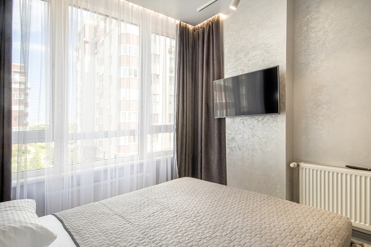 🏙️ Located on the 12st floor of a 25-story building. 🕓 Check-in anytime, 24 hours a day! No worries if you arrive late at night 🌙 ❗ All bedding is professionally cleaned in a dry cleaner! ❗ Indoor Shelter! (Undeground Parking) 💰 Included in the price: 🛏️ Comfortable Stripe Satin bed linen 🍽️ All dishes and kitchen utensils 🩴 Disposable slippers 🧼 Soap and shower gel 🌐 High-speed Wi-Fi internet ☕️ Espresso coffee machine + coffee 🍵 Tea assortment in sachets