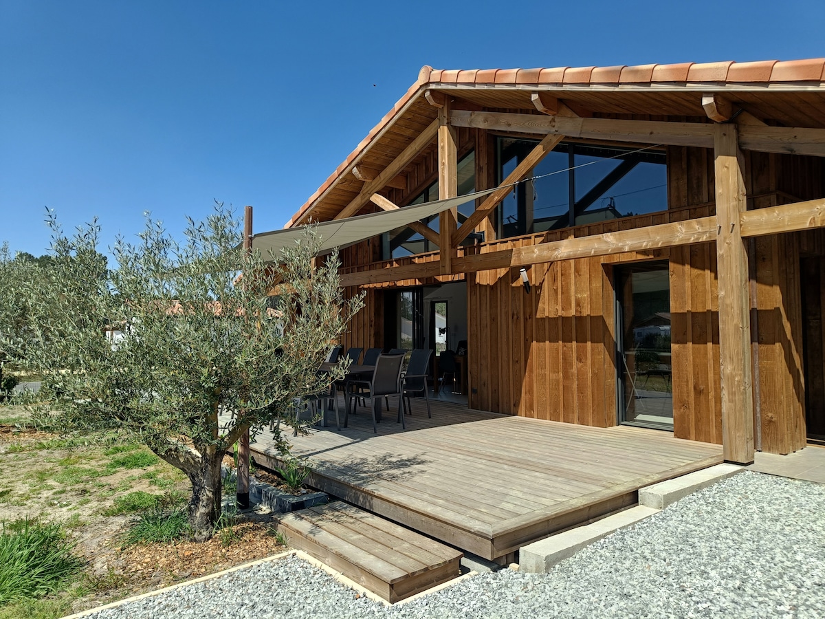 Maison neuve entourée de forêt à côté de la piste cyclable et plages de la côte landaise Elle se compose d’un salon avec cuisine américaine, de 3 chambres dont 1 suite parentale avec sdb et wc , pour finir une autre sdb et wc indépendant . Fibre internet 🛜 Pour l’extérieur une piscine pleins sud de 4 sur 8.5 m chauffée de avril au 11 novembre avec jardin paysager et 110m2 de terrasse en bois . Plage et golf de Moliets et maa à 10mn Vieux boucau 15mn Hossegor 28mn . Biarritz 50mn