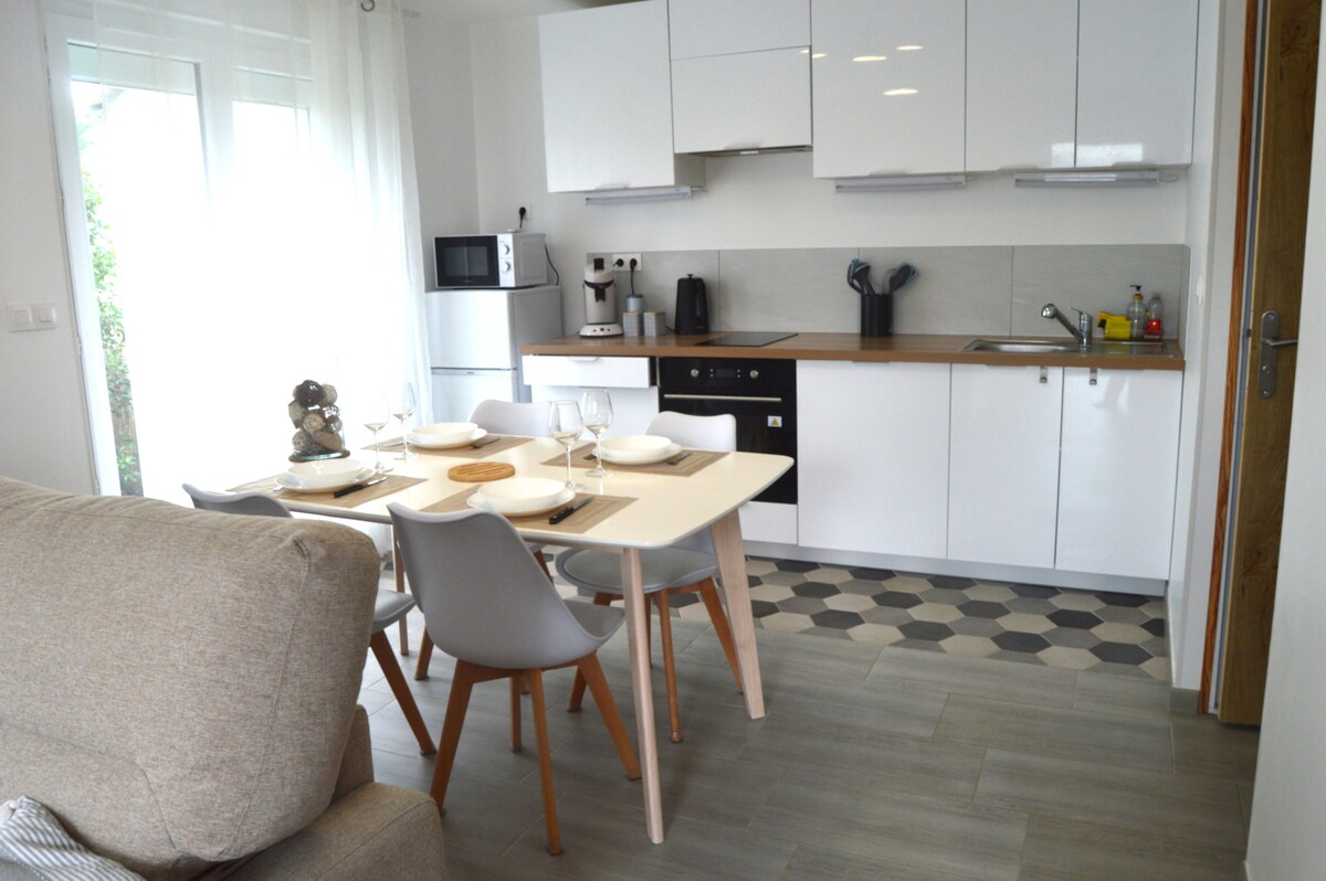 Studio confortable, terrasse, cuisine, salle d'eau