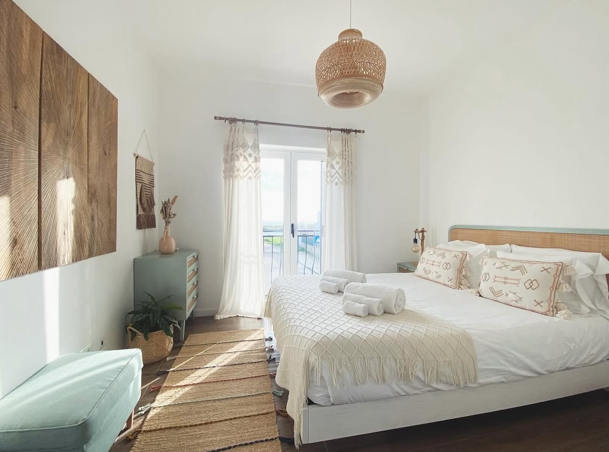 Capacité d'accueil maximale de 4 personnes. 65 m2. - 1 chambre - 1 lit Queen Size 150 x 190 cm ou 135 x 190 cm - Canapé-lit dans le salon. - Salle de bain - Baignoire et douche - 2 balcons ou terrasse ; - Rez-de-chaussée ou rez-de-chaussée sous réserve de disponibilité - Nous acceptons les animaux de compagnie en fonction des disponibilités/pétition, et il y a un coût supplémentaire de 10,00 € par animal/nuit. - Des frais supplémentaires de 20,00 € sont facturés pour le nettoyage pendant le séjour. - Pour recharger la voiture, c'est 0,35 € par kWh