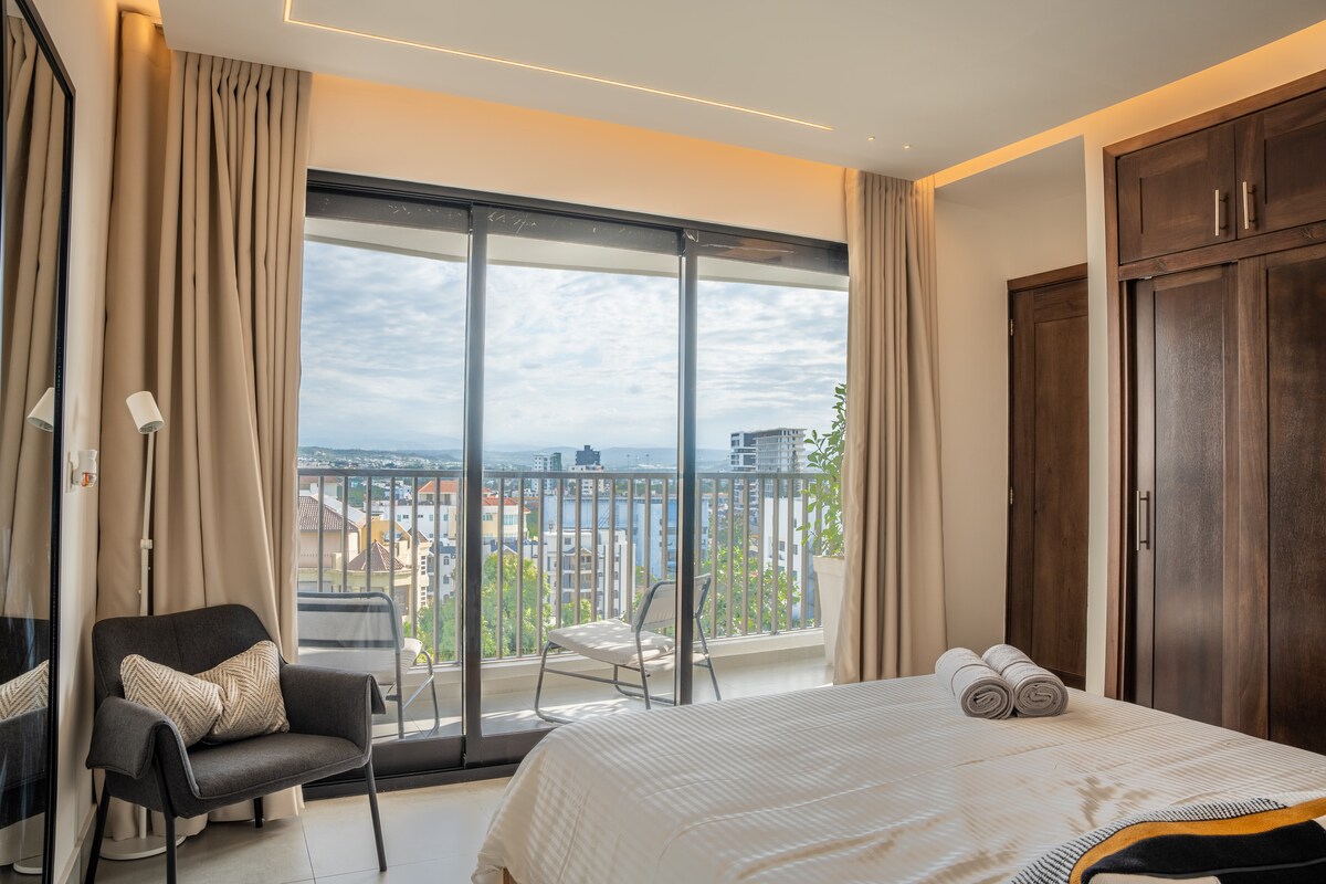 Votre refuge de luxe à Santiago de los Caballeros. Appartement moderne dans la luxueuse Torre Soha Suite II. Central, à distance de marche ou en voiture des restaurants, supermarchés, centres commerciaux et hôpitaux. Chaud et entièrement équipé pour que vous vous sentiez comme chez vous, ce bel appartement est situé au 3ème étage. Idéal pour les couples, les vacances ou les voyageurs d'affaires. Il dispose d'une salle de sport, d'une terrasse et d'une piscine exclusive avec une belle vue sur la ville et les montagnes depuis l'appartement 15