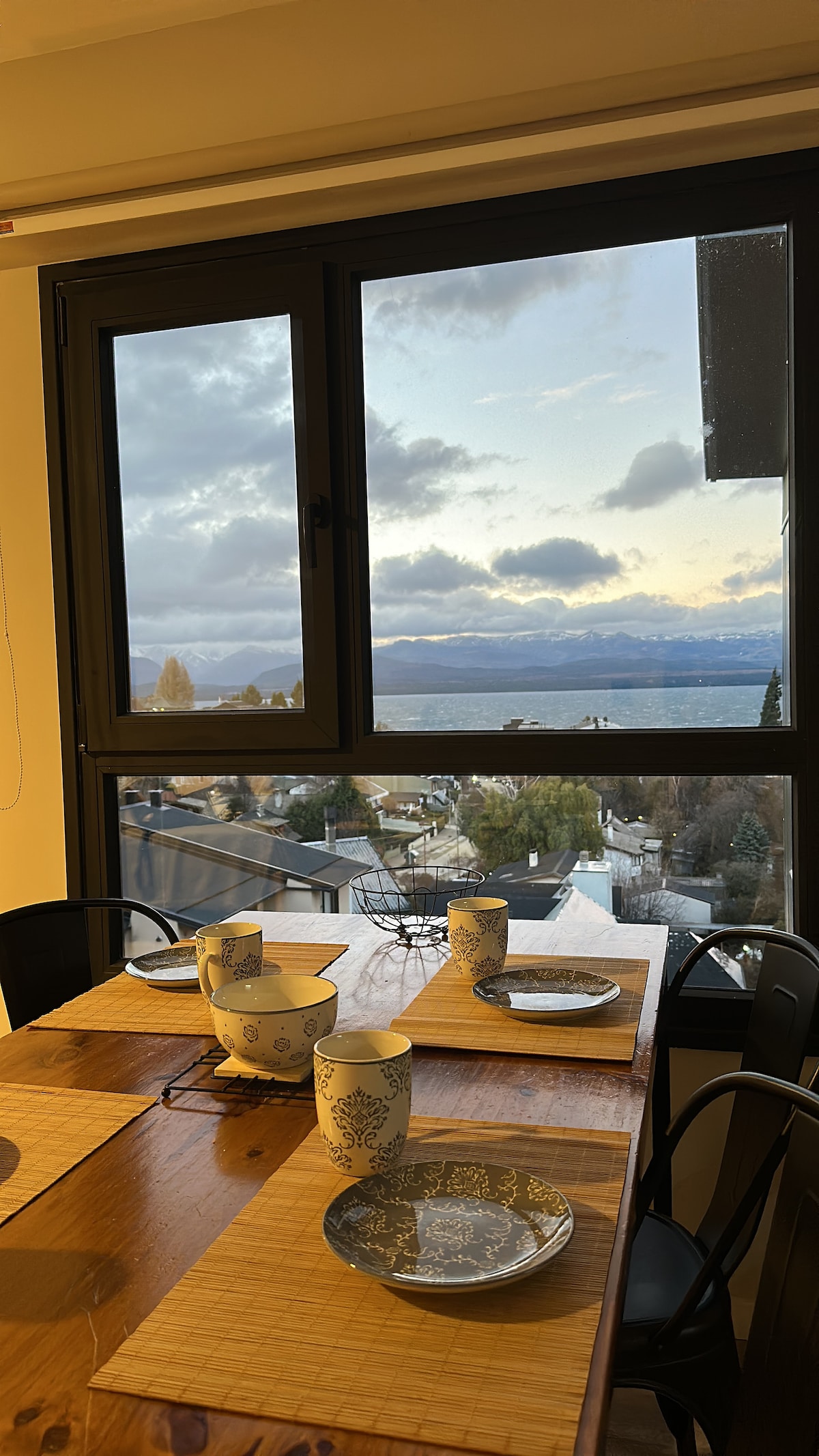 Profitez de la chaleur de cet hébergement calme et central. La décoration de l'appartement est de style éclectique avec de simples touches de modernité. Avec une vue incroyable sur le lac Nahuel Huapi et les montagnes, vous pourrez admirer le lever et le coucher du soleil. À quelques pas du bâtiment, vous trouverez un supermarché, un magasin de légumes, une pharmacie, une laverie, des restaurants, des cafés, des brasseries, un hôpital privé, une consigne à bagages, une salle de sport, Arrêts de bus de ligne à l'angle. Ils seront à 6 pâtés de maisons du centre civique.