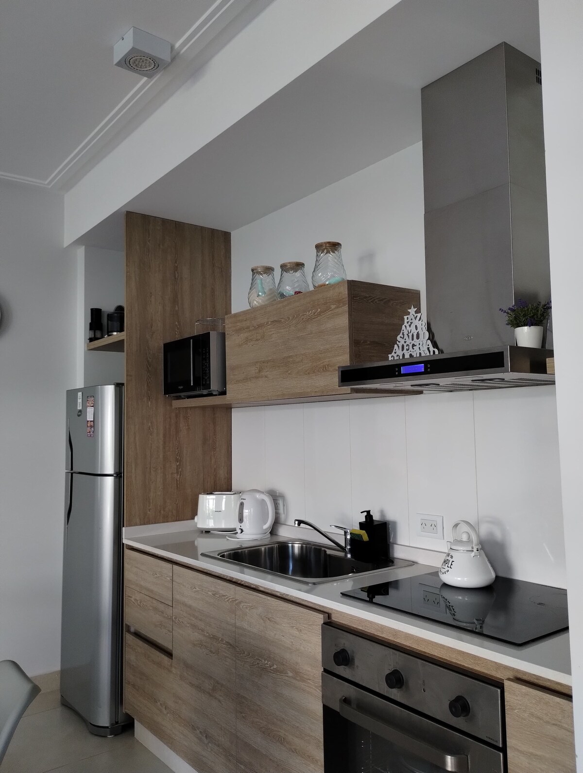 Appartement à louer situé dans un bâtiment moderne, où la simplicité et le bon goût se conjuguent pour offrir à nos clients tout ce dont ils ont besoin pour leurs jours de repos. Il se distingue par son emplacement, à quelques pas de la mer et à trois pâtés de maisons du centre commercial. Toutes les unités sont réunies en vue de la forêt fondatrice et du côté nord de notre ville. Il se compose d'une chambre avec un lit double et d'un fauteuil-lit double dans le salon-salle à manger - idéal pour les enfants.