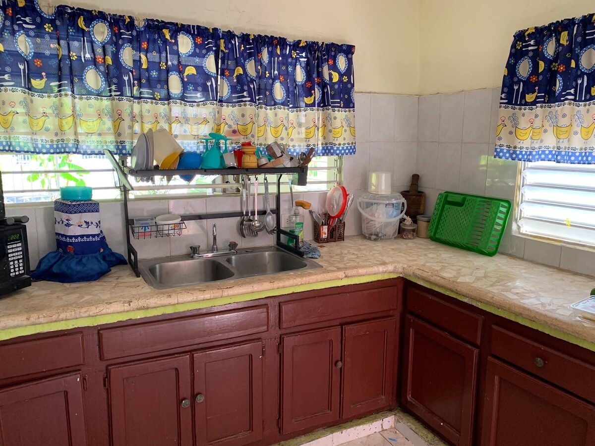 Bienvenue dans notre logement, un endroit où vous pourrez séjourner avec vos proches. La maison se compose de 3 chambres avec climatisation et ventilateurs de plafond, deux salles de bains complètes. Hébergement prêt à accueillir 6 personnes. Électricité 24 h/24. Heure d'arrivée 15 h Heure de départ 11 h 00 À 4 minutes à pied de l'Université UASD Plage El Quemaito 15 minutes Rio et Playa San Rafael à 30 minutes Rio et Playa Los Patos à 50 min