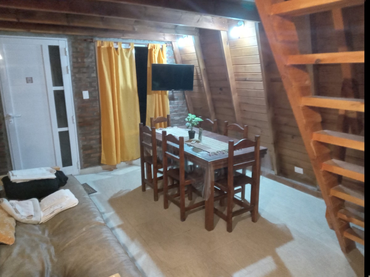 Chalet confortable dans la ville montagneuse de Villa Ventana, endroit très pittoresque et idéal pour profiter de la nature. Le chalet est situé sur un grand terrain verdoyant face au ruisseau Belisario. Il dispose de deux fenêtres par espace : un petit sol toute la journée et de belles vues sur les collines de la montagne. La décoration est typique de la région, tout en bois et dans les couleurs de la terre. Le meilleur est le deck, où vous pouvez accueillir les fauteuils qui sont à l'intérieur et aussi le hamac parapluie pour se reposer.