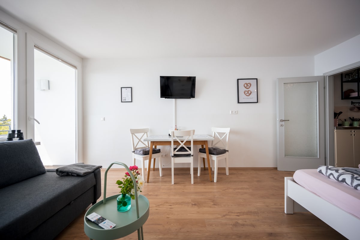 Bienvenue dans l'appartement d'Anton - ta retraite à Sternberg au bord du lac Wörthersee. Notre appartement design récemment rénové est situé au calme à la lisière de la forêt près de Fahrendorf, avec vue sur le lac Wörthersee. Ici, vous trouverez détente, nature et style sur 90 m2 - parfait pour les couples, les familles ou les voyageurs en solo à la recherche de calme. Le point de départ pour un bon moment au bord du lac ou en hiver l'accès au téléski de Fahrendorf. Le centre de Velden am Wörthersee est à 5 min en voiture.