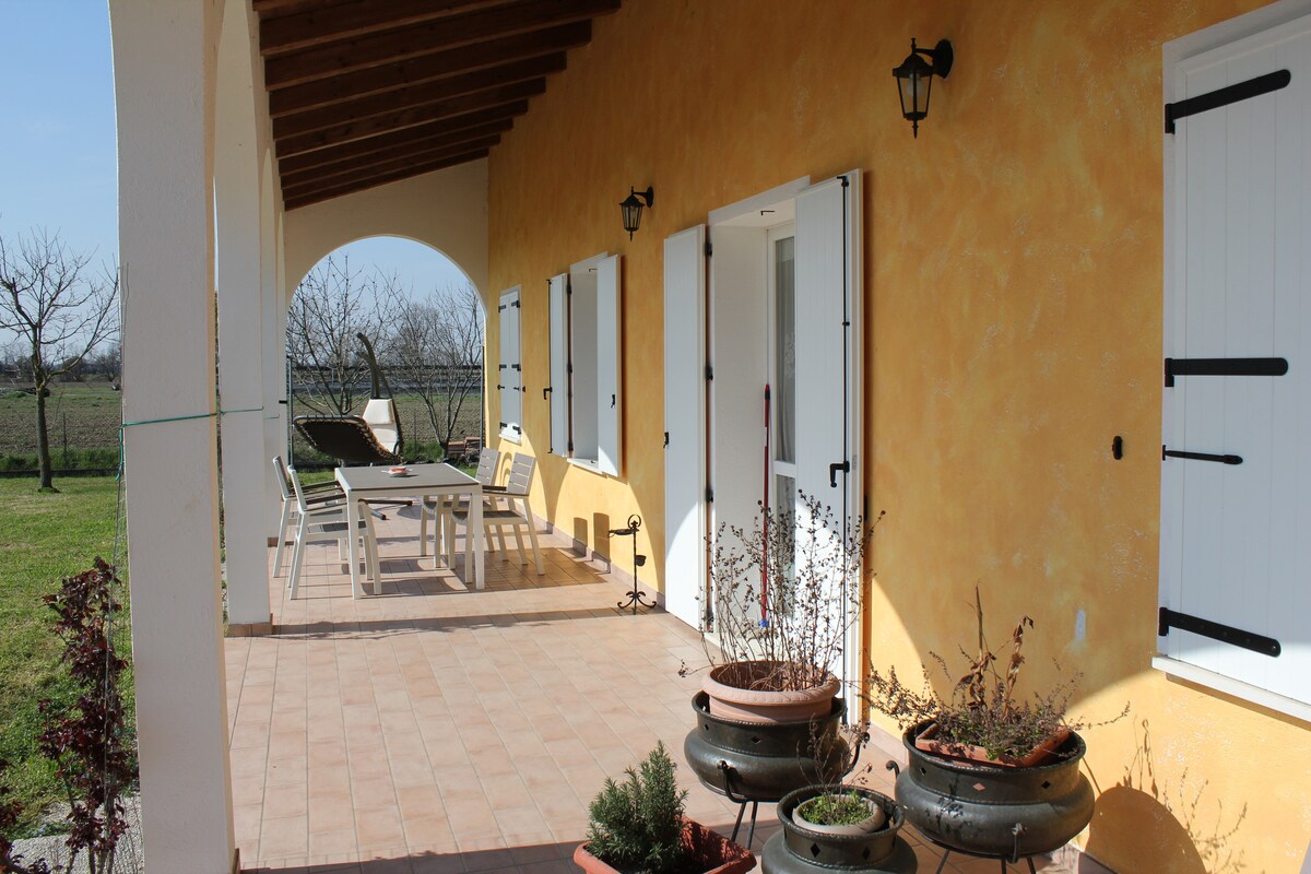 depandance appena ristrutturata,funzionale ed accogliente, arredata in stile country e dotata di un bel parco. Possibilita' di rilassarsi in giardino o sotto il patio attrezzato. tv satellitare, wi fi gratuito e biciclette a disposizione. Ideale per singoli o famiglie con bimbi. Si accettano volentieri gli amici a quattro zampe. A disposizione anche materiale informativo sul territorio ed i suoi prodotti tipici. A meta' strada tra Ferrara e Rovigo, si trova a 3 km dalla palladiana villa Badoer.
