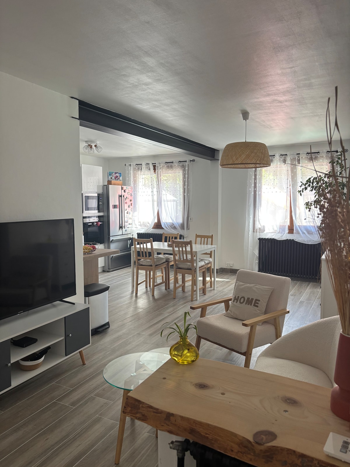 Appartement neuf et cosy, conçu comme un véritable cocon où l’on se sent chez soi dès l’arrivée. Idéal pour 2 à 4 voyageurs en déplacement professionnel ou en escapade dans la région grenobloise. Au calme, à 10 minutes à pied de la gare et à environ 30 minutes des stations de ski. Accessible par un escalier, il offre deux chambres doubles, dont une charmante mezzanine également accessible par escalier (vigilance pour les jeunes enfants). Logement non-fumeur, animaux à discuter.
