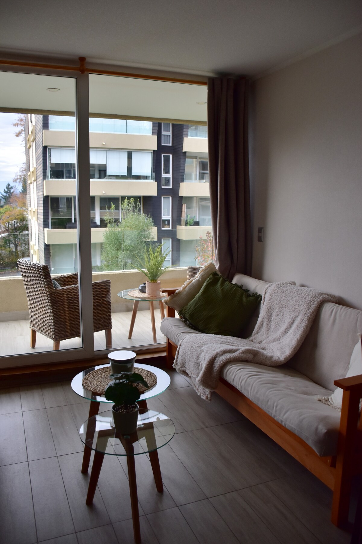 Détendez-vous dans un endroit avec de beaux espaces verts, sur le chemin du volcan au km 1 près du centre de ski et du centre de Pucon. Appartement entièrement équipé, 1 chambre avec lit king. Séjour avec canapé-lit pour 2 enfants, chauffage, Wifi TV, parking, terrasse et piscine. Club house : Jeux électroniques pour enfants Gymnase, vélos (sans frais). jarras, quincho (coût supplémentaire) buanderie (lave-linge et sèche-linge) coût supplémentaire (pièces de 500 pesos) Conciergerie 24/7