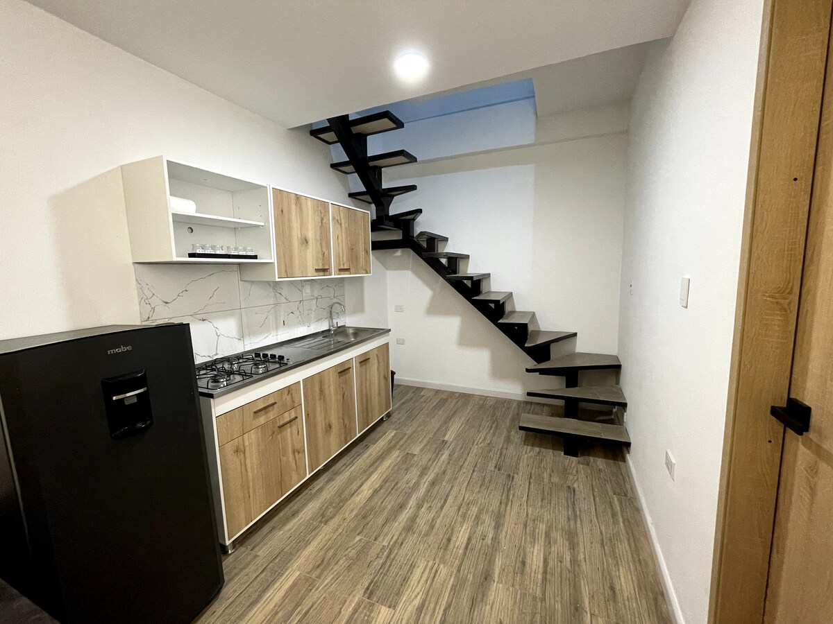 Appartement confortable situé à l'entrée de Villavicencio en arrivant de Bogota. Idéal pour les couples, les amis ou les familles avec un ou deux enfants. L'appartement dispose de deux niveaux : À l'étage supérieur, vous trouverez une chambre confortable avec lit double, salle de bain privée et projecteur Smart. À l'étage inférieur, vous profiterez d'un canapé-lit double, d'une salle à manger, d'une cuisine équipée, d'une salle de bain principale et d'une Smart TV. De plus, l'espace comprend une terrasse confortable, pour se détendre ou profiter de dîners ou de moments spéciaux.