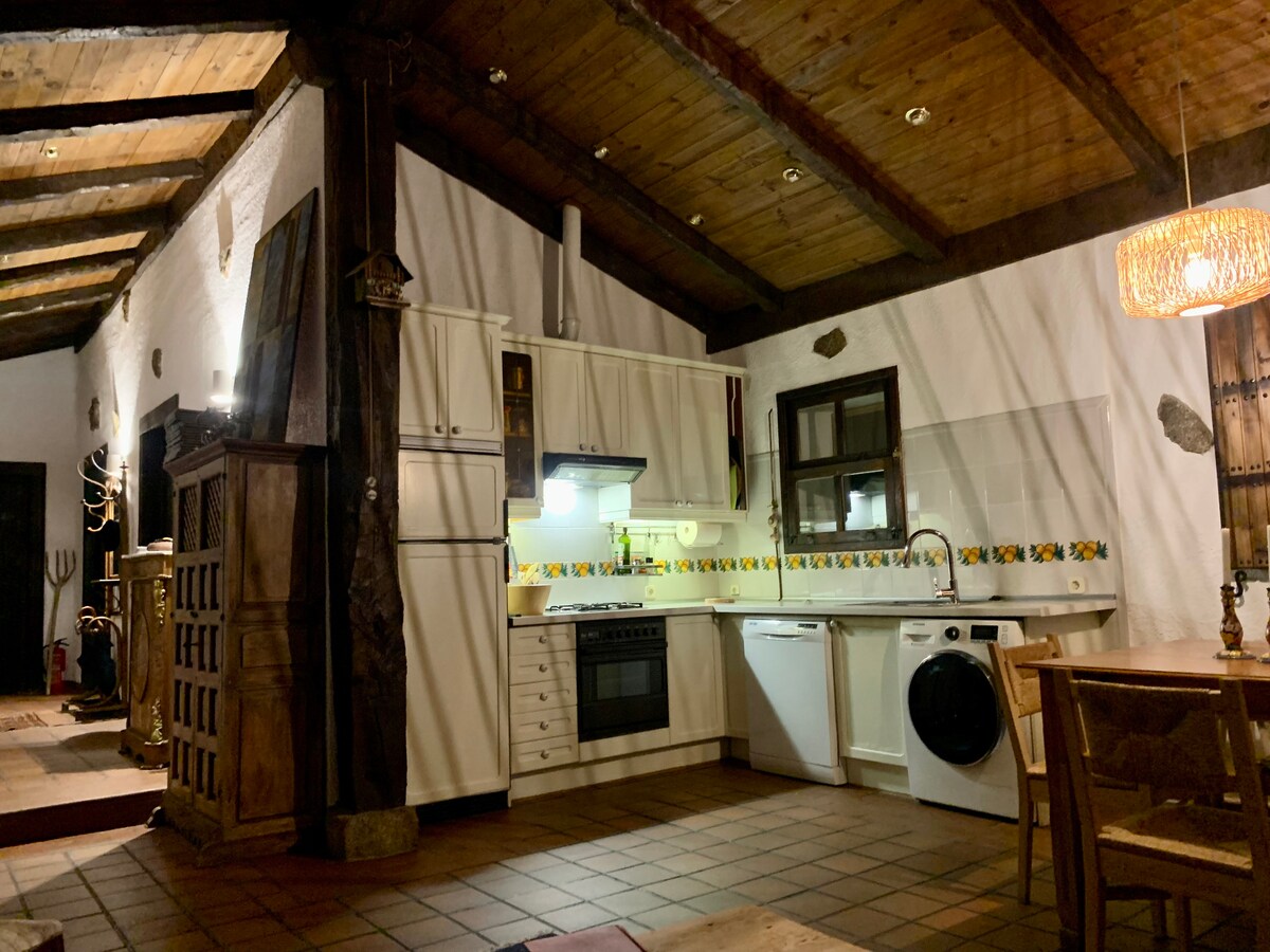 Notre maison a beaucoup de charme et au milieu de la nature. La ferme dispose d'une immense piscine entièrement privée et le jardin est une forêt d'arbres centenaires. Elle est pleine d'espaces pour se détendre. Elle est dans la Sierra Ouest de Madrid et entourée de paix et de tranquillité. En outre, il est proche de Madrid à seulement 45 minutes du centre. À seulement une heure de Tolède, Ségovie et Avila. Et dans les environs, vous trouverez des itinéraires à travers des villages charmants et des marécages où vous pourrez profiter de la nature. TR d
