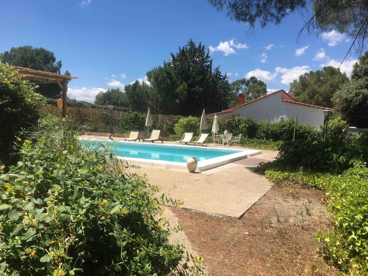 villa à la périphérie de 50 km de Madrid , avec beaucoup de tranquillité et tout le luxe , dispose de 2 salles de bain une au rez-de-chaussée et une autre au 2ème étage, 5 chambres , 3 avec lit double, 1 avec deux lits simples et la 5Room est SÉPARÉE de la MAISON dans l'ESPACE PISCINE avec sa salle de bain. il dispose également d'un espace détente avec un kiosque équipé de cuisine , salle de bain et piscine, barbecue , terrasse extérieure. C'est un endroit qui est très proche du marais de San Juan et d'autres zones de nature .