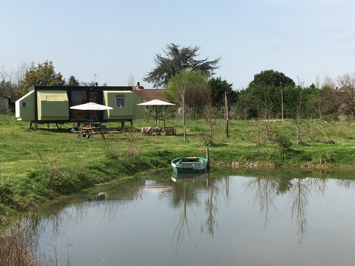 La Nature Spirit, une Tiny House flottante atypique nichée sur le paisible lac de la Cadie, à seulement 20 minutes de la prestigieuse cité médiévale de Saint-Emilion. Véritable cocon écologique et 100% autonome, ce logement unique allie confort et modernité pour une expérience hors du commun au fil de l’eau. Entre nature et patrimoine, la Nature Spirit vous invite à explorer les vignobles de la région (visites et dégustation) et activités autour du lac, balade, randonnée.