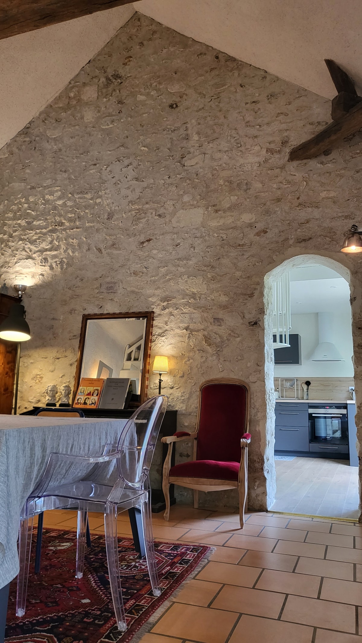 Une escapade unique et romantique au coeur d' Amboise ,sur les bords de Loire ,un espace atypique et authentique (creusé dans la roche au 16 ème siécle ) à la décoration design et à l' equipement moderne. Dans un esprit loft sur plusieurs niveaux : La salle de bain et sa BALNEO/JACUZZI pour un maximum de détente à 2 . Le salon équipé d' une TV connectée 65 pouces et barre de son performante. L 'espace nuit et son lit design pour une nuit confortable et enfin le coin repas .