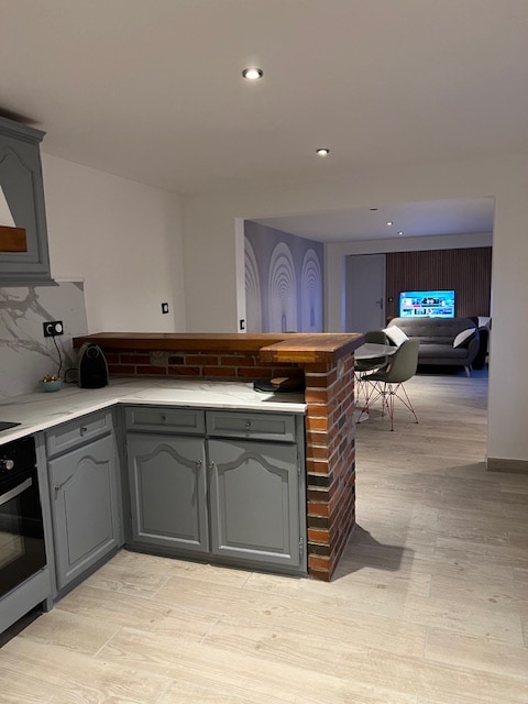 Une parenthèse agréable dans un logement pensé pour vous! Des couleurs douces, apaisantes mais aussi surprenantes! Un aménagement et une décoration soignés, imaginés pour allier confort, beauté et fonctionnalité … voici ce qui vous attend dans cette maison pleine de charme. En famille ou en entre amis, la maison du 40 est prête à vous accueillir!
