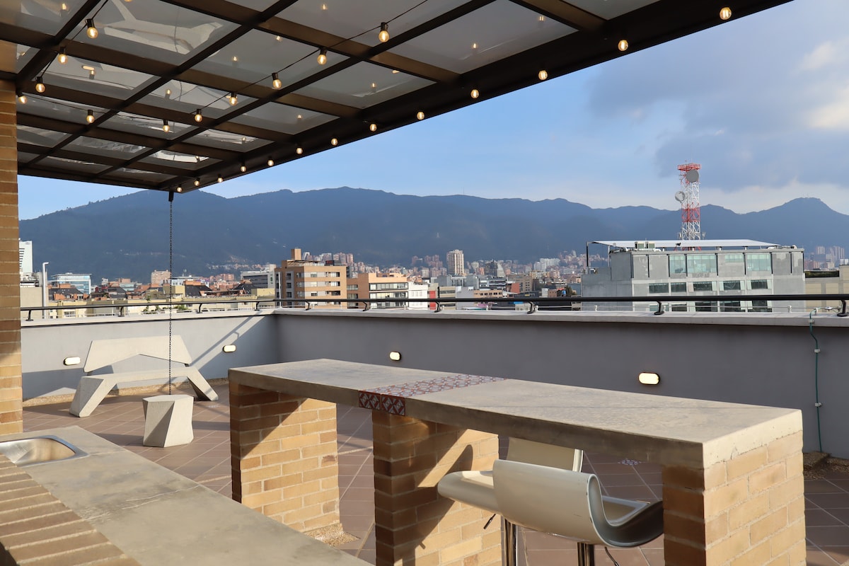 Cet appartement de type loft comprend une charmante terrasse privée, idéale pour se détendre après avoir parcouru la ville. Situé entre Zona G et Quinta Camacho, vous serez à quelques pas des meilleurs restaurants, cafés et boutiques de Bogotá, ainsi que des hôtels de luxe tels que Hilton, JW Marriott et Four Seasons. Il dispose d'une sécurité privée 24/7, d'un check-in simple et d'une connexion Wi-Fi rapide de 500 Mbps pour travailler ou regarder vos séries préférées.