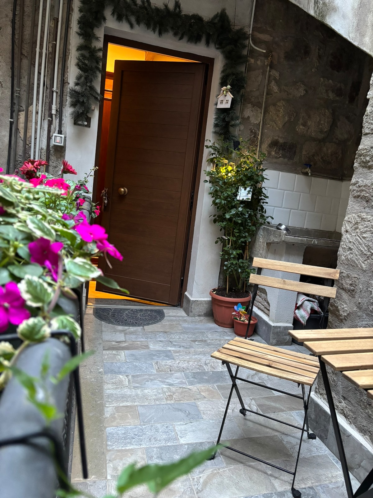 Nous proposons un hébergement dans l'un des plus anciens bâtiments de Civita, un bâtiment du XVIe siècle construit sur une ancienne tour du Moyen Âge. L'appartement est situé au rez-de-chaussée du Palazzo Contino, ancien Palazzo Pinzi, avec un jardin en terrasse avec une vue imprenable sur la vallée de Calanchi et un beau jardin plein de plantes et de fruits. Depuis le jardin, vous pourrez profiter de magnifiques levers de soleil. Le jardin est une véritable oasis par rapport au reste du village qui, pendant la journée, peut parfois être assez bondé.