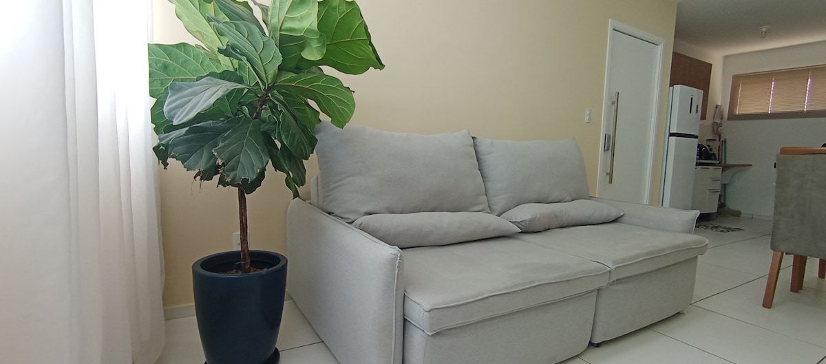 Reposez-vous confortablement dans cet appartement situé dans une copropriété calme avec une copropriété ouverte 24h/24, à quelques minutes du centre commercial Conquista Sul. Ce que vous trouverez : • 2 chambres confortables avec des lits soignés et bien ventilés • Chambre avec canapé, télévision et Wi-Fi rapide • Cuisine équipée avec ustensiles, cuisinière et réfrigérateur • Salle de bain propre avec douche chaude • Parking gratuit sur place Idéal pour ceux qui recherchent commodité et confort, que ce soit pour un voyage d'affaires ou de loisirs.