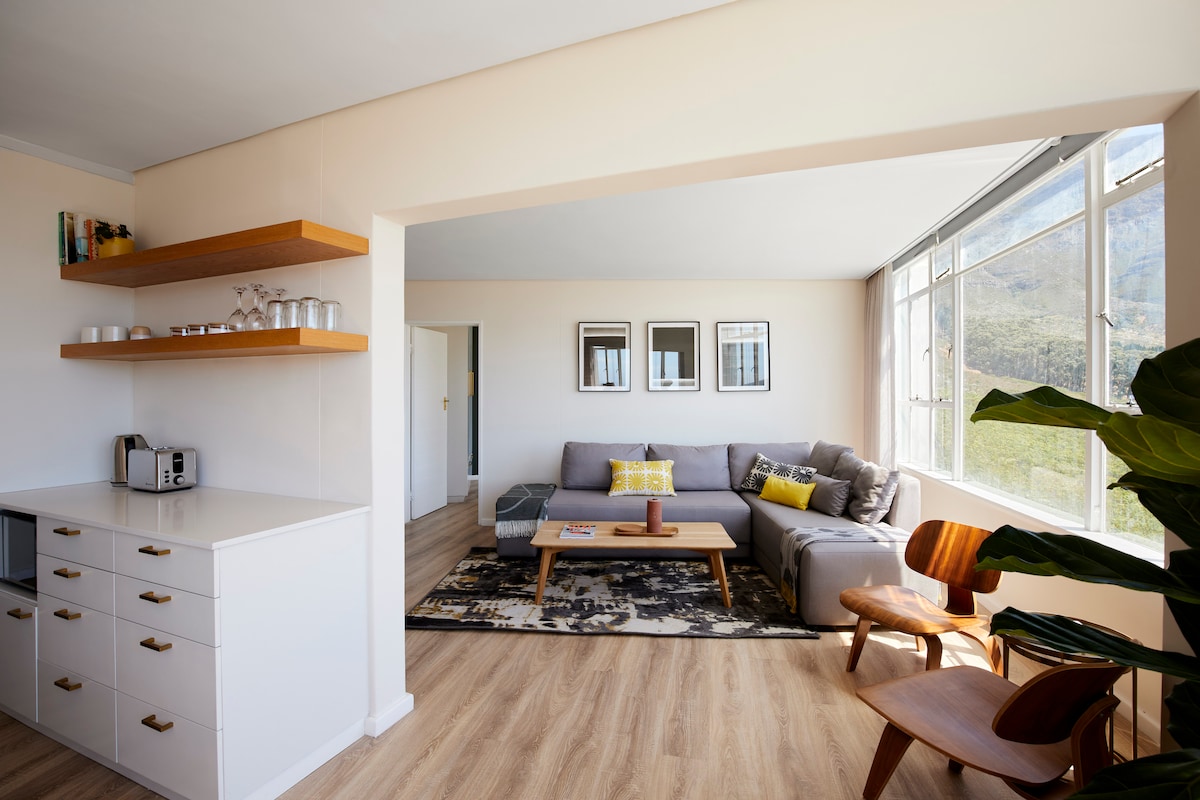 Cet appartement récemment rénové peut accueillir 2 adultes + 1 enfant et se trouve au pied de la montagne de la Table, offrant de belles vues sur Lion's Head et la montagne de la Table à proximité. Bien qu'attaché à la maison principale, l'ancien studio d'art est entièrement privé, avec la chambre attenante donnant sur une terrasse spacieuse, une kitchenette équipée et un salon ouvert. Le canapé est assez grand pour qu'une troisième personne puisse dormir. Située à 10 min en voiture du centre-ville et à 15 min de Clifton Beach, cette maison de vacances a tout ce dont vous avez besoin.