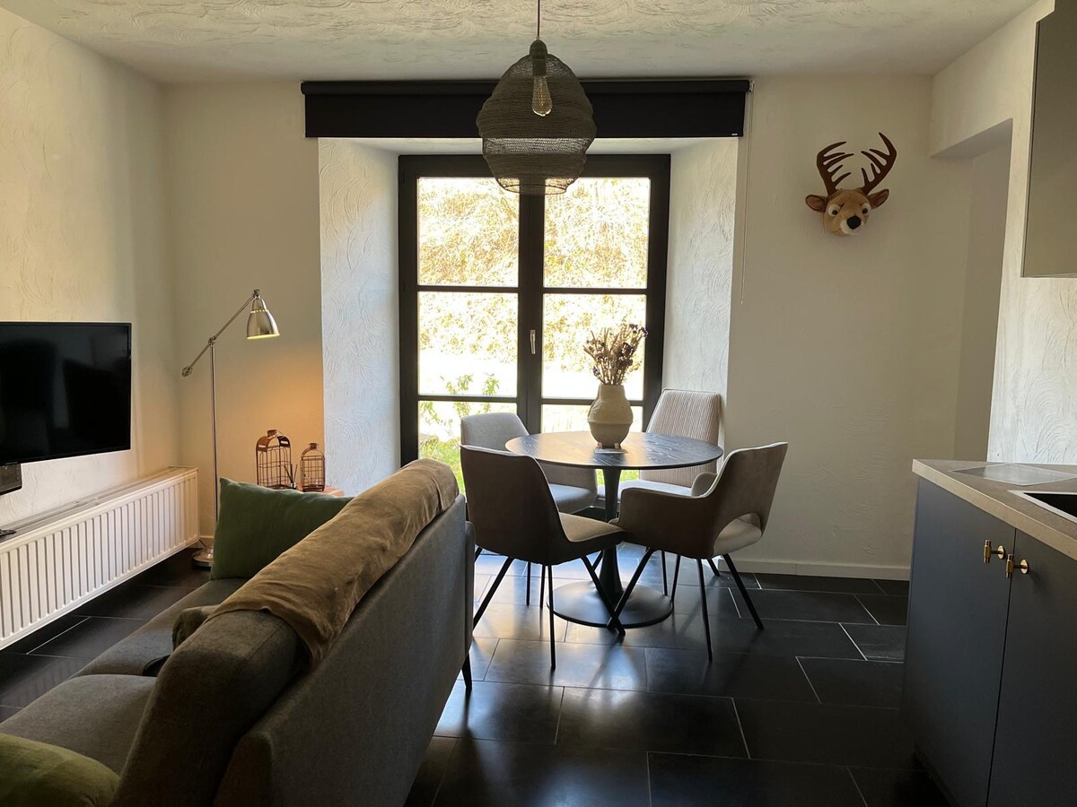 Laissez-vous seduire par la magnifique vallée de Vresse sur Semois. Dormez dans un appartement élégant au coeur des montagnes où règne calme et sérénité. Venez-vous ressourcer au milieu de la nature, pratiquer une activité comme la randonnée, le VTT, le kayak ou simplement vous assoir déguster une bonne bière au bord de la rivière. Pour bien profiter de votre sejour, je vous offre ; - un départ tardif - un guide des meilleurs restaurants et des lieux incontournables - un panier de bienvenue.