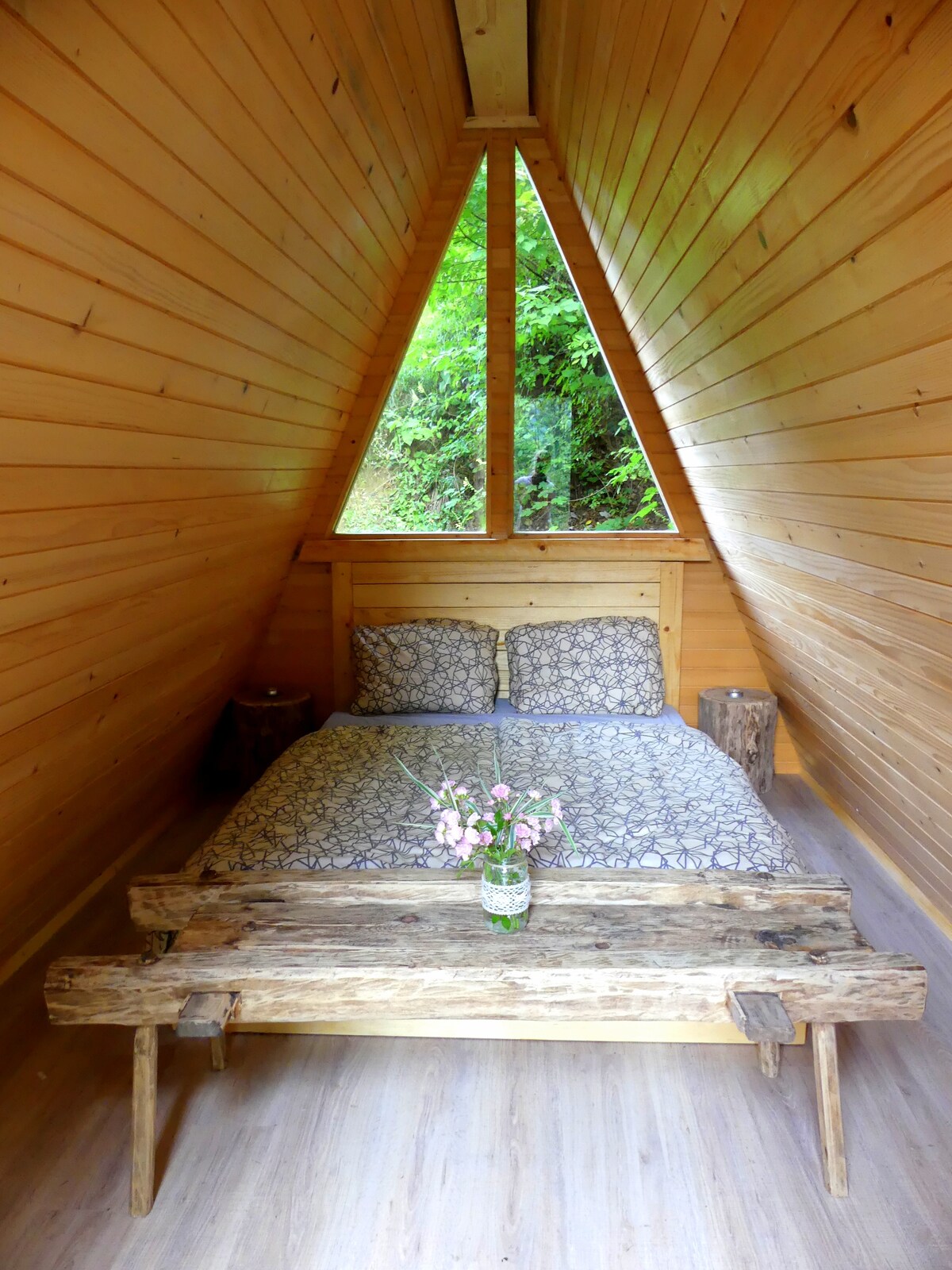 Une cabane en bois entourée de verdure - Pred Peklom