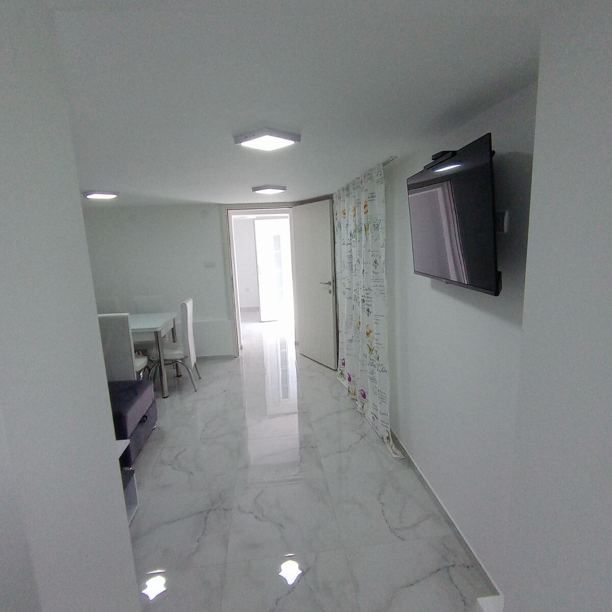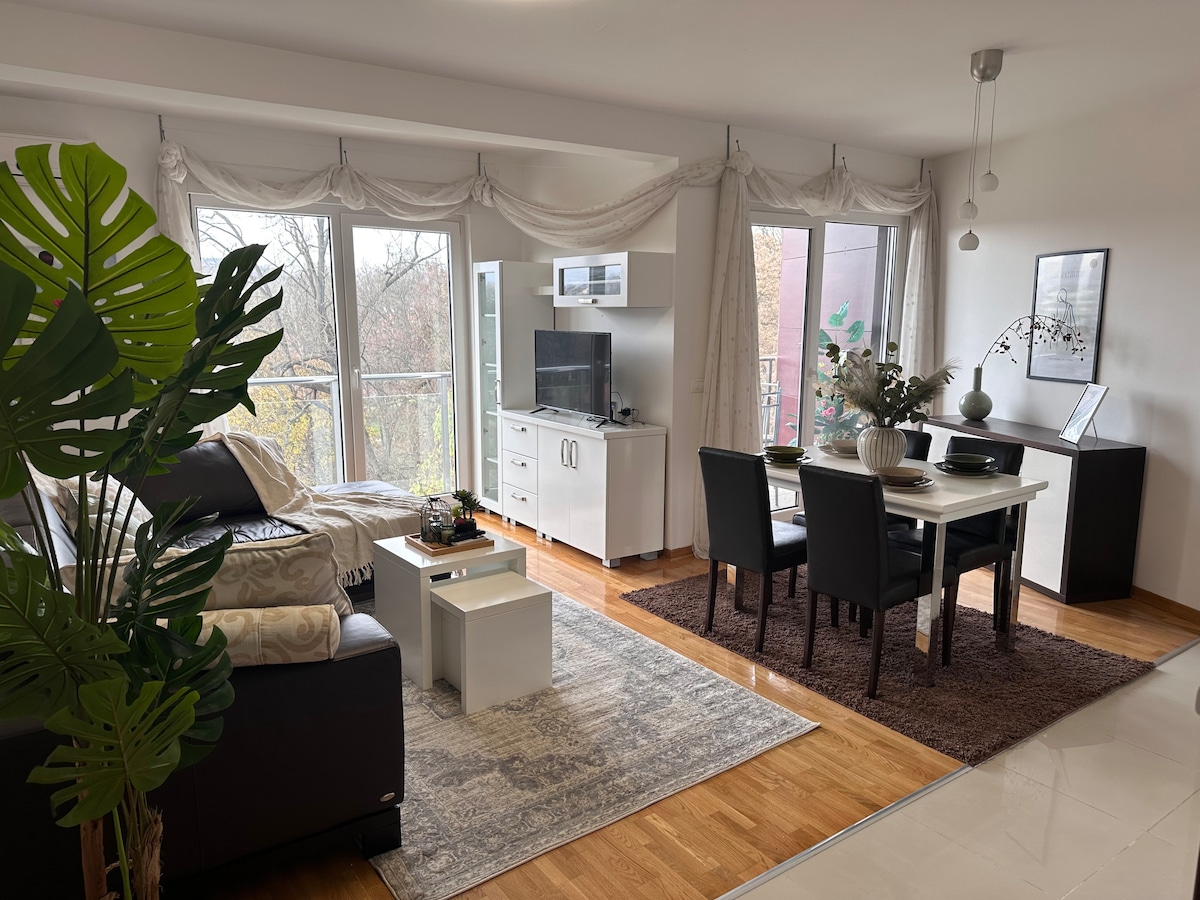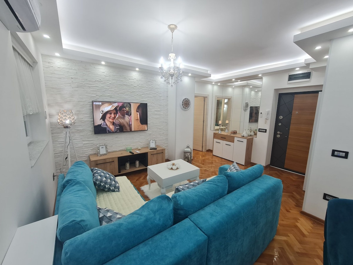 Cet endroit spécial est proche de tout, ce qui facilite la planification de votre séjour. L'appartement est neuf, rénové, luxueusement équipé avec tous les appareils électroménagers dans les moindres détails, à votre service se trouve également un minibar, la possibilité de transférer de l'aéroport et bien d'autres commodités ........ L'appartement est situé au centre de la ville et dispose d'un parking privé...