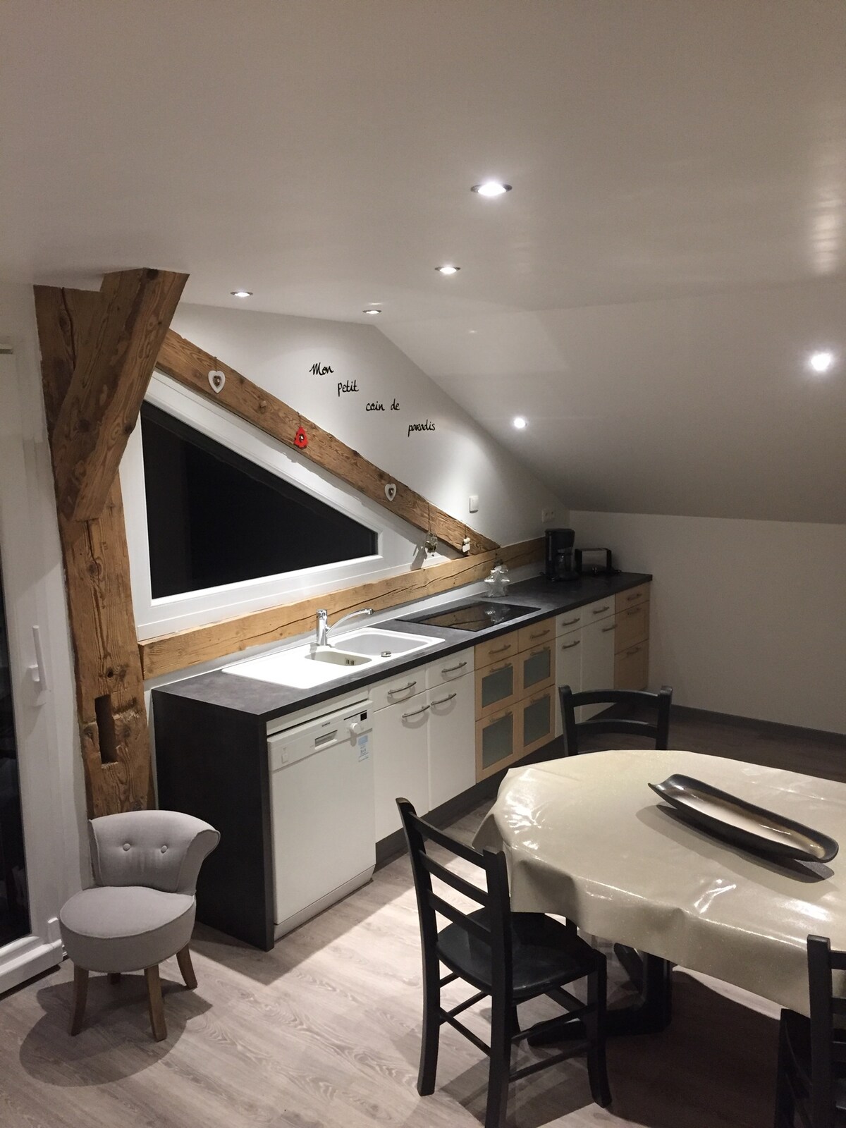 Situé au coeur d'une ancienne bâtisse type du Haut-Doubs, venez vivre un séjour hors du temps dans cet ancien grenier datant du début XVIIIe siècle refait à neuf par nos soins, ceux d'une architecte Vietnamienne et d'un artisan de la région. Projet réalisé avec passion, dans un but de partage et de respect, tant pour ceux pour qui l'ont conçu que pour ceux qui l'occuperont. Tout a été pensé pour que vous passiez le plus agréable des séjours, dans ce magnifique village qu'est Oye et Pallet.
