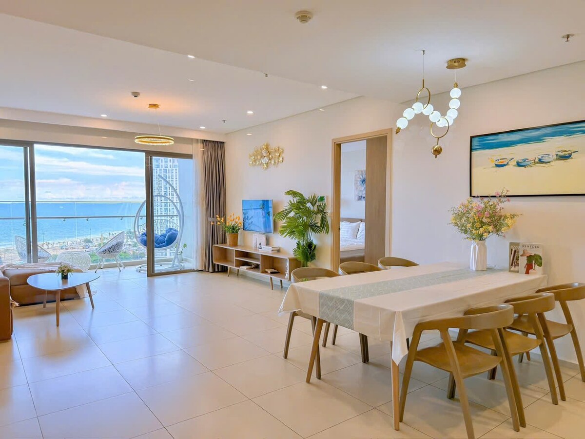 Appartement 1BR minimaliste et entièrement meublé au 15e étage avec une vue spectaculaire sur la mer. Idéal pour les couples ou les familles avec un enfant de moins de 5 ans. Parfaitement situé au bord de la plage arrière (plage de ThuУ Vân). Durée estimée de la marche jusqu'aux équipements à proximité : - 2 minutes pour rejoindre la plage de l'autre côté de la rue - À 5 minutes de la supérette la plus proche 24h/24 (GS25) - 8 minutes du supermarché le plus proche (Lotte Mart) Ascenseurs rapides. Netflix gratuit. Nous avons également une moto à louer.
