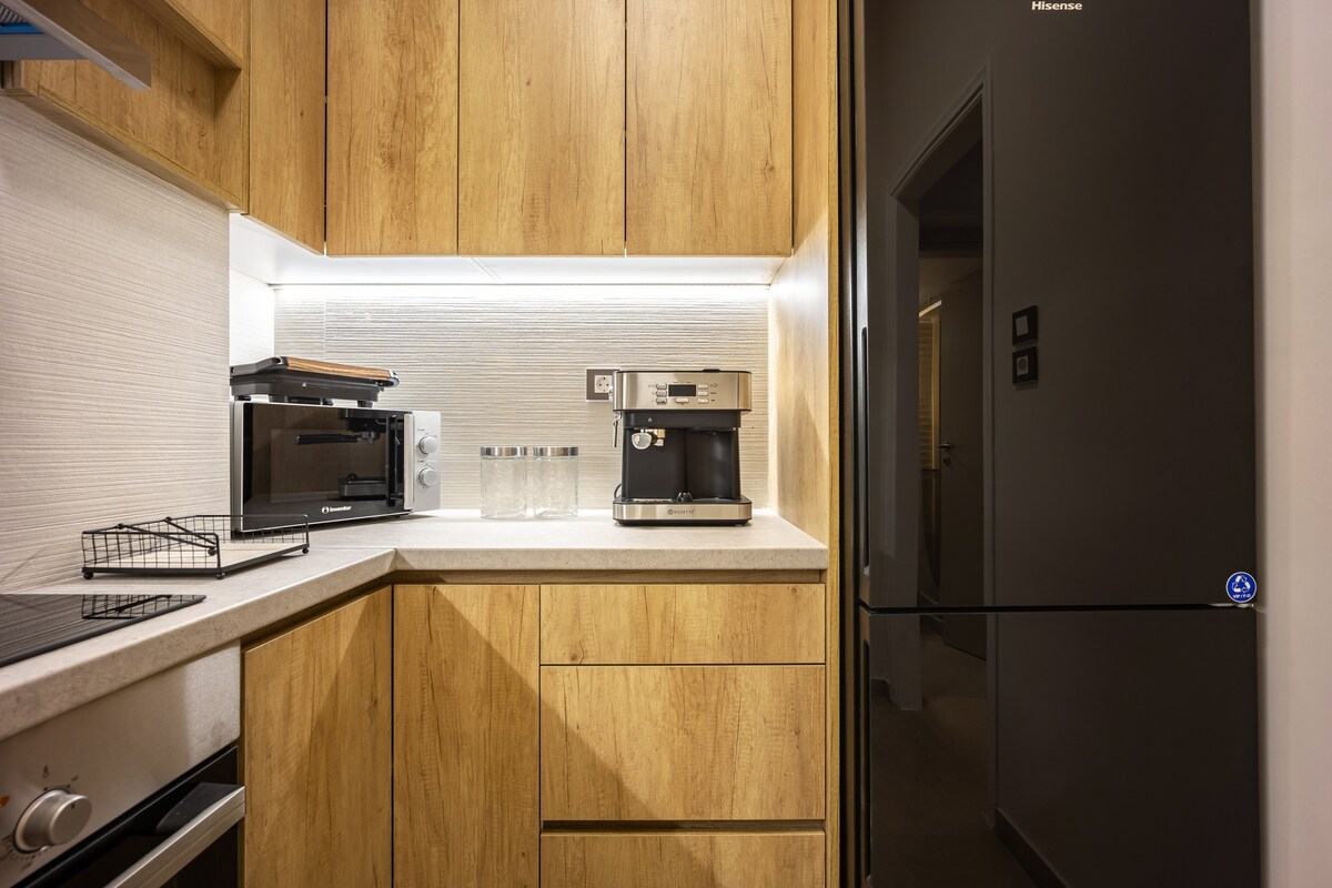 Vous vous sentirez chez vous dans cet appartement rénové et ensoleillé à Pagrati (4e étage). Une retraite confortable qui allie ambiance locale et confort moderne. Points forts : 🚀 Wi-Fi 500 Mbit/s : fibre optique rapide, parfaite pour les nomades numériques. 🛏️ Confort suprême : 2 lits King Size avec matelas de qualité supérieure pour un sommeil réparateur. 🏙️ Vue : balcon avec vue dégagée sur la ville, près du stade. Entièrement équipé pour que vous ne manquiez de rien. Le « chez-soi loin de chez soi » parfait pour les voyageurs en quête de qualité et de détente.