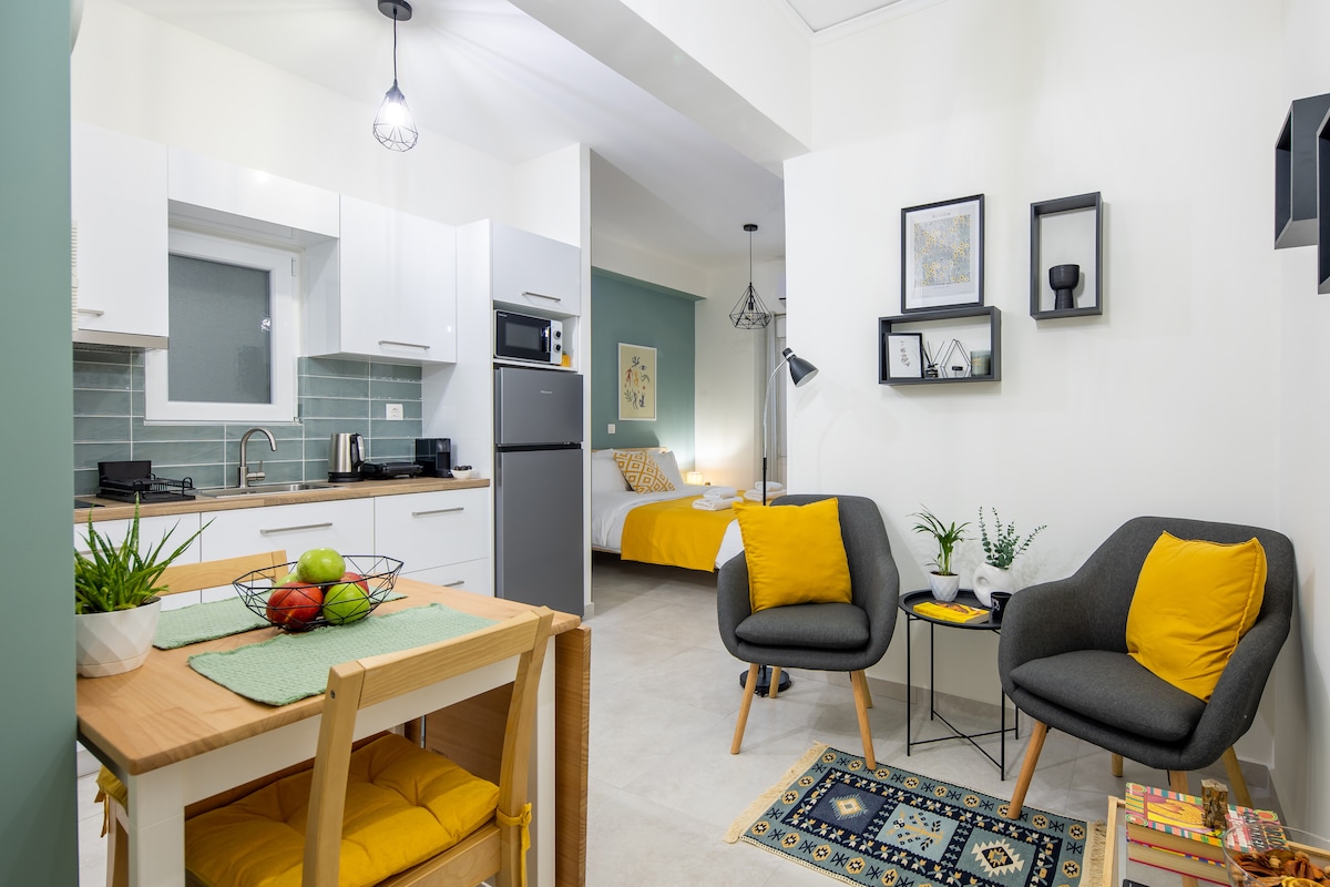 Enjoy complete comfort and experience the best of Athens in this modern apartment. Located in one of the city’s most popular neighborhoods, it is perfect for couples, travelers, or business trips. The fully equipped apartment features a stunning living area with a cozy dining space, a bedroom with a double bed, a fully equipped kitchen, and a modern bathroom.