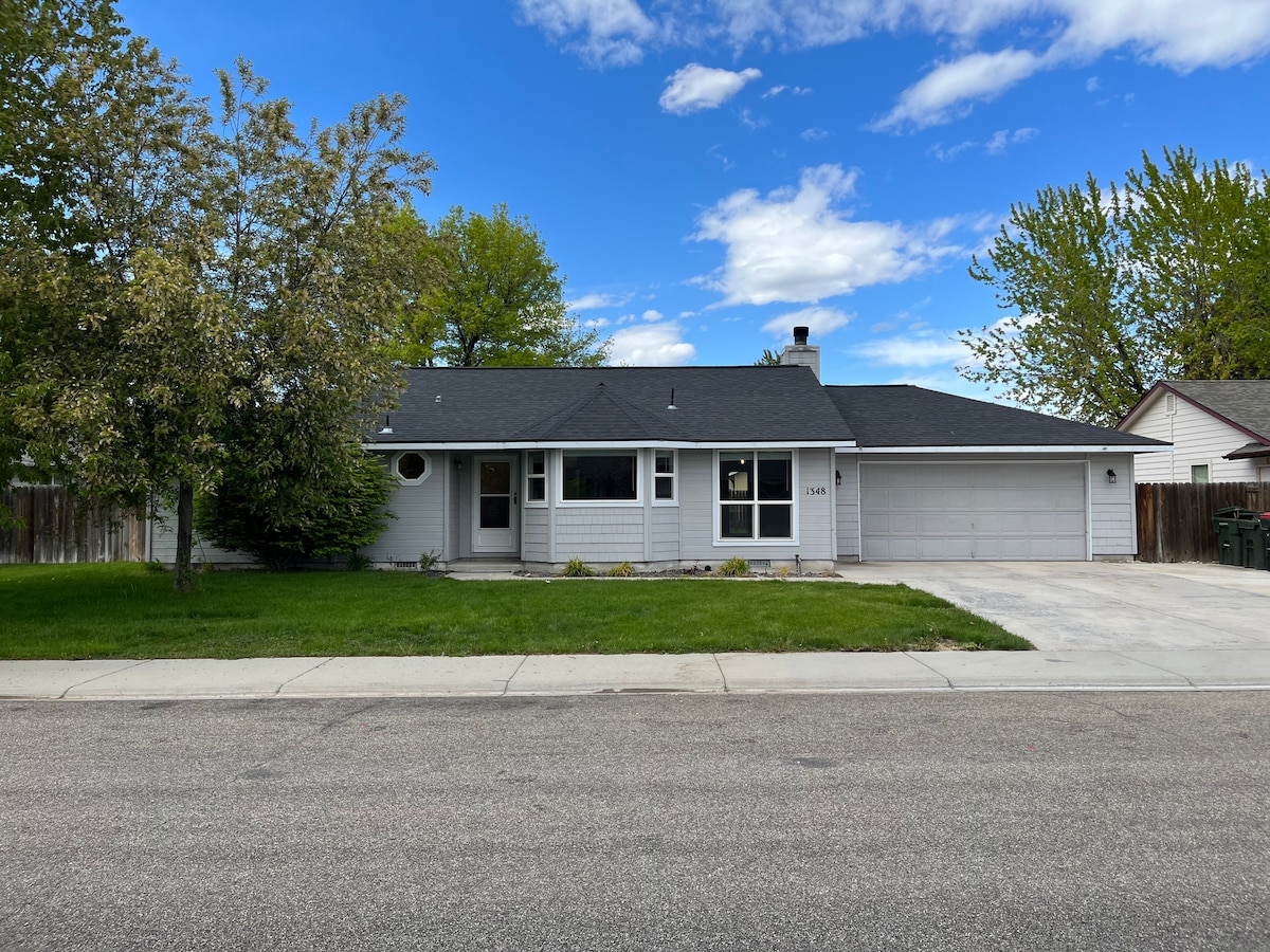 Venez vous détendre dans votre maison confortable, mignonne, moderne, (3 chambres/2,5 salles de bain) et idéalement située. Découvrez le charme familial et relaxant de Meridian, ID. Équipé d'Internet haut débit, d'une télévision connectée et de YoutubeTV en direct gratuit, ainsi que d'un espace de travail dédié, vous pouvez travailler et vous amuser. Détendez-vous sur le patio et profitez du chauffage extérieur. À 5 min de l'I-84. À 6 min du Wahooz Family Fun Center & Water Park. À 15 min de l'aéroport de Boise. À 20 min de la BSU/ExtraMile Arena. À 8 min du centre-ville de Meridian. À 15 min du centre-ville de Nampa.
