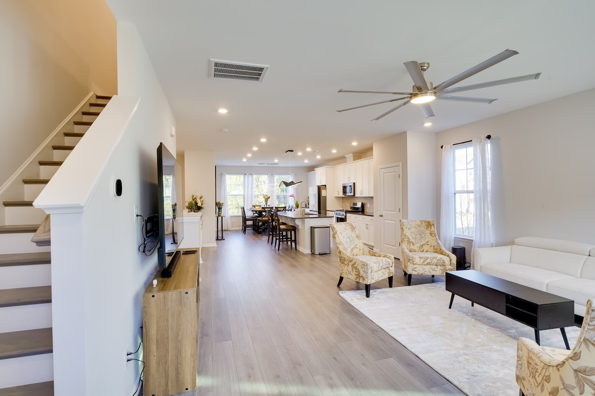 Le confort et la commodité vous attendent dans cette nouvelle location de vacances en Caroline du Nord située à seulement 6 miles du centre-ville de Durham ! Cette maison de ville à l'extrémité dispose d'un intérieur lumineux avec 4 chambres, 3,5 salles de bains, un tout nouveau mobilier, des appareils de cuisine haut de gamme et beaucoup d'espace pour se rassembler. Visitez vos proches à l'Université Duke, promenez-vous dans le parc Bethesda ou explorez les points chauds du centre-ville ! Plus tard, vous pourrez vous détendre avec des avantages communautaires tels que des piscines, un centre de fitness ouvert 24h/24, une salle de jeux et plus encore !