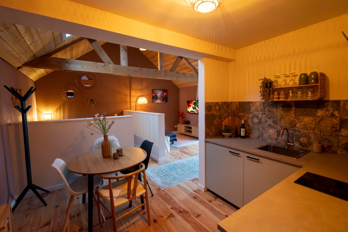Déconnectez-vous et détendez-vous à notre escapade dans la nature à la FRONTIÈRE de Bamna : une maison en bois isolée (entourée de quelques chalets seulement) à la frontière entre la Belgique et les Pays-Bas. Sortez sur les sentiers pédestres et cyclables, et la forêt à proximité. Pour être apprécié comme une retraite solitaire, une escapade en duo, des vacances relaxantes ou actives en famille ou quelques amis dans cette élégante escapade en pleine nature. Profitez d'un jardin privé paisible, d'un feu extérieur, d'une terrasse fraîche, d'une cuisine ouverte entièrement équipée et d'un salon confortable, de 2 chambres et d'une salle de bain.