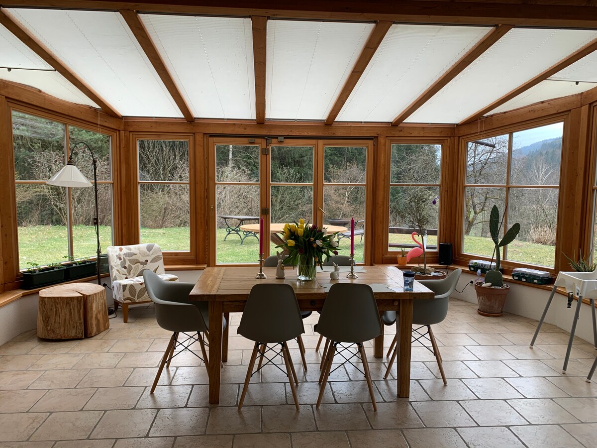 Maison de campagne rénovée avec amour au milieu du verger, y compris la dégustation de fruits de saison et l'idylle de la ferme ! Emplacement particulièrement agréable et calme au-dessus de la vallée de l'Aist. A proximité : lieux de baignade naturels à Wald- et Feldaist, pistes cyclables - reliées à la piste cyclable du Danube Passau-Vienne, sentiers de randonnée (réserve naturelle "Unteres Feldaisttal", réserve naturelle Tannermoor, Johannesweg, etc.), Ruines de château, capitale régionale Linz, parc du logiciel Hagenberg, Mémorial de Mauthausen et Gusen, vieilles villes de Freistadt, Enns, Linz, Krumau