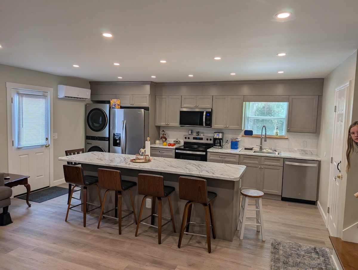 Ce « petit appartement » rustique est le secret dont vous ne sauriez même pas l'existence (appartement au sous-sol). Avec cuisine, salle de bain complète, lit Queen Size et canapé convertible, c'est tout ce que vous pourriez espérer d'un espace de vie minuscule ! Nous avons plusieurs livres et jeux de société pour profiter de votre temps ensemble et l'écran plat de 50" est là, au cas où la lecture et les jeux ne seraient pas votre truc. Si vous avez besoin d'un endroit calme pour vous évader pendant un certain temps, ou d'un endroit propre où poser votre tête, nous sommes là pour vous aider !