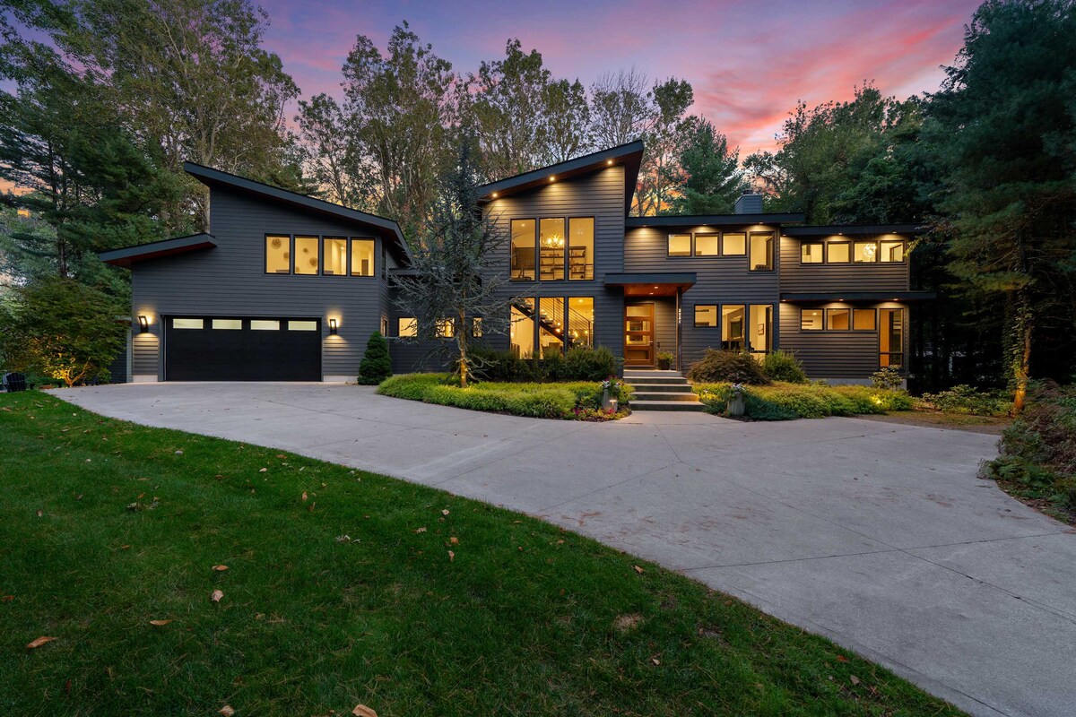 Niché dans les bois de Saugatuck, Blue Cedar offre une escapade de luxe sereine au bord du lac pour les familles, les groupes ou les couples. Avec 5 chambres, 4,5 salles de bain et de l'espace pour 12 personnes, ce logement est conçu pour le confort et la reconnexion. Profitez d'un salon ouvert, d'une salle de jeux, d'un bar, d'une salle de sport privée, d'un jacuzzi et d'une voiturette de golf personnelle. Sortez pour faire un barbecue, rassemblez-vous autour du feu ou emmenez les kayaks au lac voisin. À quelques minutes du centre-ville et de la rivière Kalamazoo, aventure et commodité vous attendent à Blue Cedar.