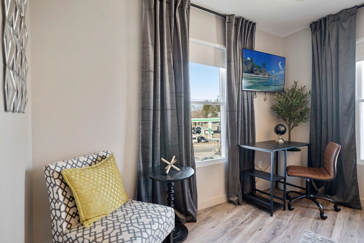 Profitez d'une expérience élégante dans cet appartement d'une chambre situé au centre de Poughkeepsie. L'appartement est situé dans une maison de ville victorienne calme au 3e étage. Logement entier, une place de parking pour un véhicule est incluse. Situé au centre-ville. À distance de marche de : bureau de poste, tribunaux, bâtiments du comté, poste de police, hôtel de ville, centre de congrès Nesheiwat (anciennement centre civique), Poughkeepsie Grand Hotel, Walkway Over The Hudson, Bardavon Opera House, The Academy, gare, front de mer, dépôt de bus, et plus encore.