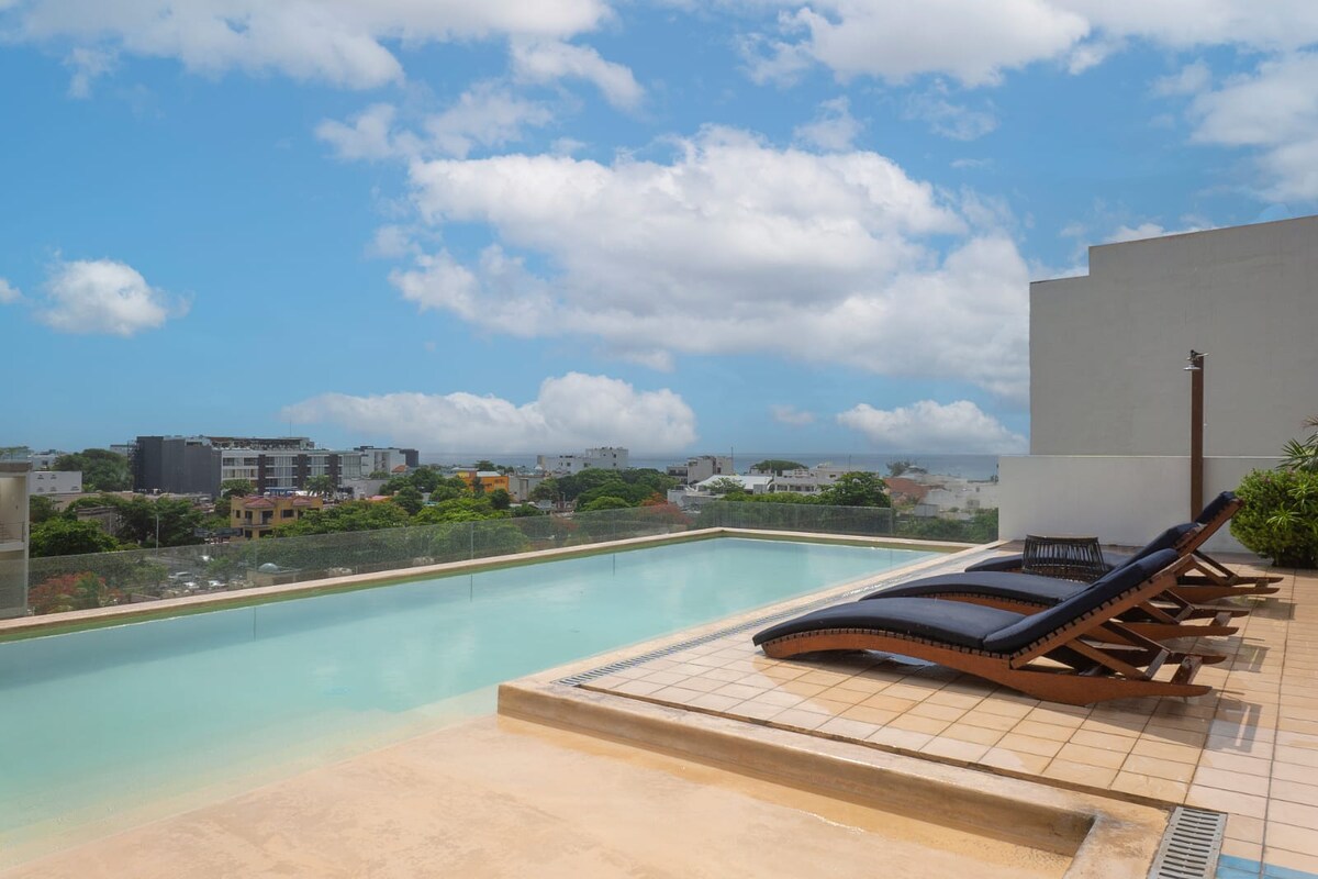 🪻À quelques pas de l'une des plages les plus luxuriantes et de la 5e Avenue, cet appartement moderne vous offre une expérience sans précédent. Reposez-vous dans un lit king size confortable, profitez de vos films préférés sur Smart TV et explorez votre créativité dans une cuisine pratique et fonctionnelle. 🌿Profitez de votre espace extérieur sur un balcon privé. Et si vous cherchez quelque chose de plus spécial, montez sur le toit : une piscine à débordement, une vue partielle sur la mer et le soleil radieux des Caraïbes vous y attendent.