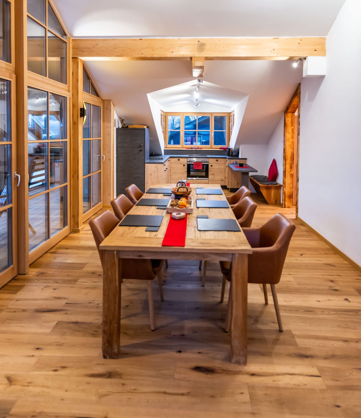 Élégant appartement penthouse de style alpin moderne sur le plateau de Seefeld. L'appartement confortable et calme au dernier étage est très confortable pour jusqu'à 4 personnes. Il dispose d'un salon-salle à manger lumineux avec cuisine moderne entièrement équipée, de deux chambres doubles, de deux salles de bains, du chauffage au sol, d'une connexion Wi-Fi gratuite et d'une très grande terrasse privée. De là, vous pourrez profiter de la vue imprenable sur les montagnes et la vallée de l'Inn, aussi bien l'été que l'hiver.