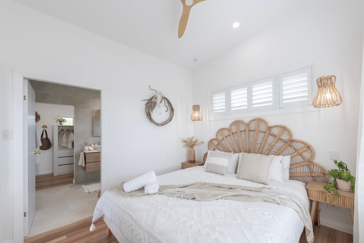 Située entre la plage et le lac au bout d'une impasse calme avec une vue pittoresque sur le lagon ! Et à seulement quelques mètres de l'accès à la célèbre nouvelle piste de Fernleigh ! Cette maison confortable d'une chambre entièrement équipée est toute neuve et impeccablement propre ! Entièrement équipée avec tous les draps, serviettes, savons, shampoings, papier toilette, machine à café Nespresso + dosettes de café, bouilloire, café instantané, sachets de thé, sucre, grille-pain, friteuse à air et tous vos essentiels de cuisine.