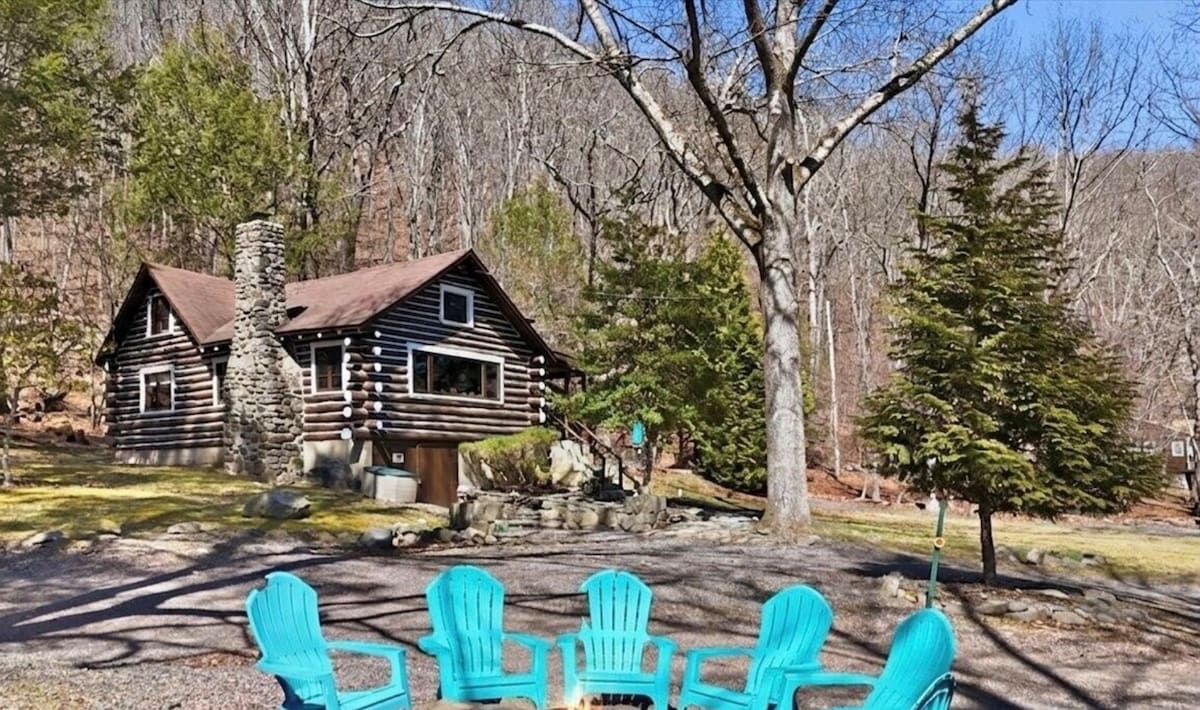 Cabane forestière unique et tranquille (avec jacuzzi) au bout de la route dans la forêt, un endroit idéal où, au coucher du soleil, vous pourrez profiter de boissons au coin du feu extérieur ou de la cheminée intérieure, écouter la nature, méditer ou engager des conversations si vous avez de la compagnie. Jeux familiaux dans la cabane. Situé à environ 10 min de Shawnee Mountain. D'autres activités saisonnières amusantes et des magasins se trouvent également à proximité. CONSULTER MES AUTRES ANNONCES