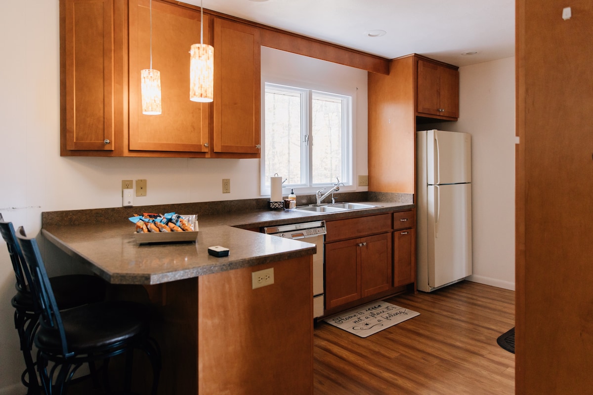 Vous recherchez un hébergement calme, relaxant et paisible ? Ne cherchez plus, ce petit chalet est tout cela et plus encore ! Ces photos ne rendent pas justice au chalet, nous l'avons entendu de la part de nombreux voyageurs qui ont séjourné dans notre chalet ! Vous ne serez pas déçu par votre séjour dans notre cabane. La cuisine est équipée d'une cuisinière, d'un four à micro-ondes, d'un réfrigérateur et d'un lave-vaisselle. Un porche avant et arrière avec de belles vues pour boire une tasse de café, lire un livre ou se détendre ! Nous espérons que vous viendrez bientôt séjourner chez nous !