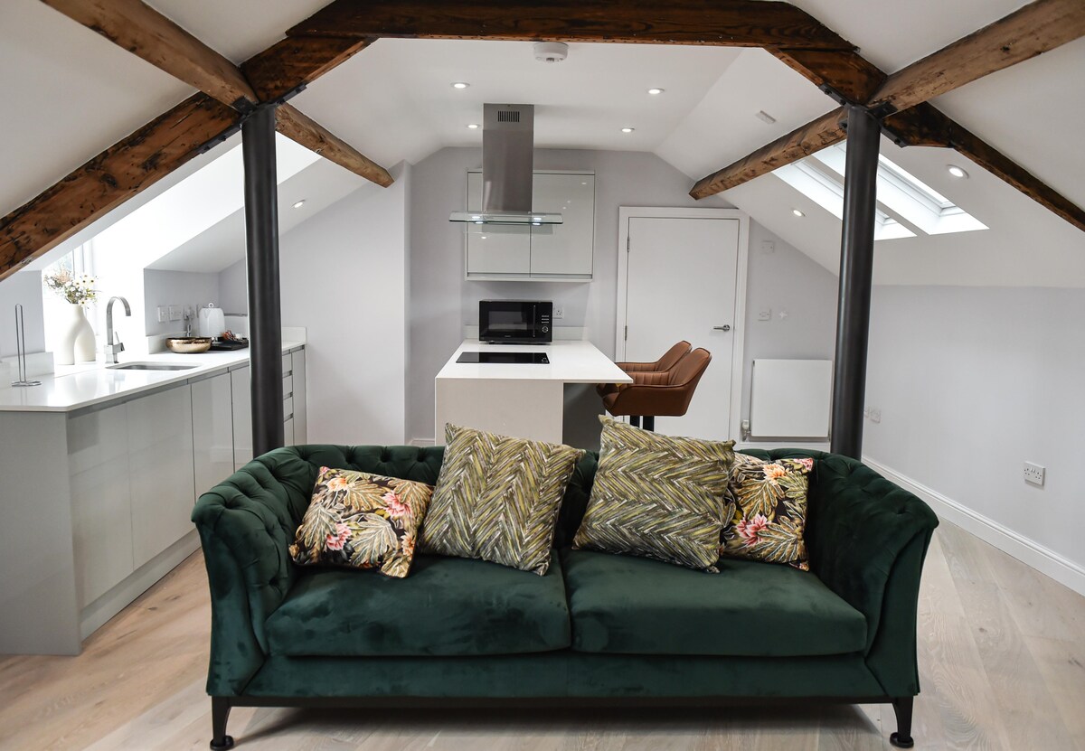 La suite penthouse emblématique, classée Victoria Colonnade de Grade II, Swans Nest, notre luxueux appartement de 2 chambres et 2 salles de bain avec ses poutres apparentes traditionnelles disposent d'installations immaculées et modernes et d'une atmosphère accueillante. Moments des célèbres attractions historiques du spa : les Royal Pump Rooms et les jardins fleuris de Jephson, ses chambres élégantes offrent un grand confort et une grande intimité, faisant de l'appartement l'endroit idéal pour explorer les attractions et la riche histoire du Warwickshire verdoyant.