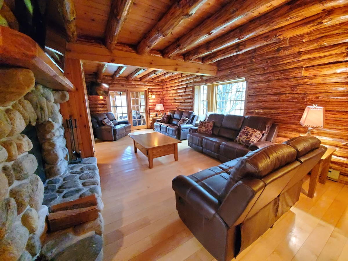 Méga-chalet rustique au bord du lac George +🔥 jacuzzi intérieur + sauna + piscine