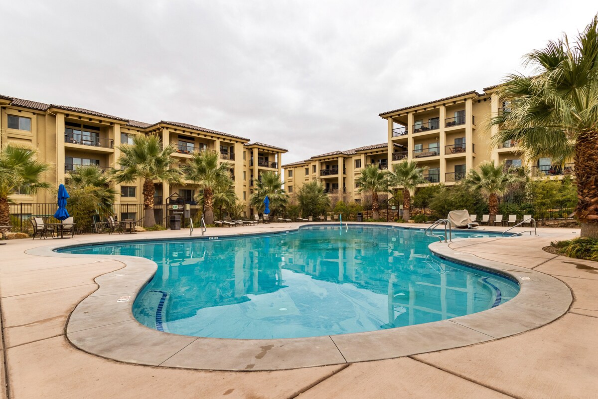 Don’t book a place out in the boonies! Next to Las Palmas. Book our modern corner main floor condo with no stairs and tons of windows! We are next to state parks, (Zion) Tuacahn Theatre, Walmart, Bear claw poppy trailhead for hiking/biking trails, 100mi UTV Riding and we are also next to The Grip Fitness - Ninja Warrior Obstacles and a Spa! Our condo is a ground unit so you have large patio that sits between palms! Walk out the back to a grass area! Fiber Wifi, Luxury Massive pool/tub Pickleball
