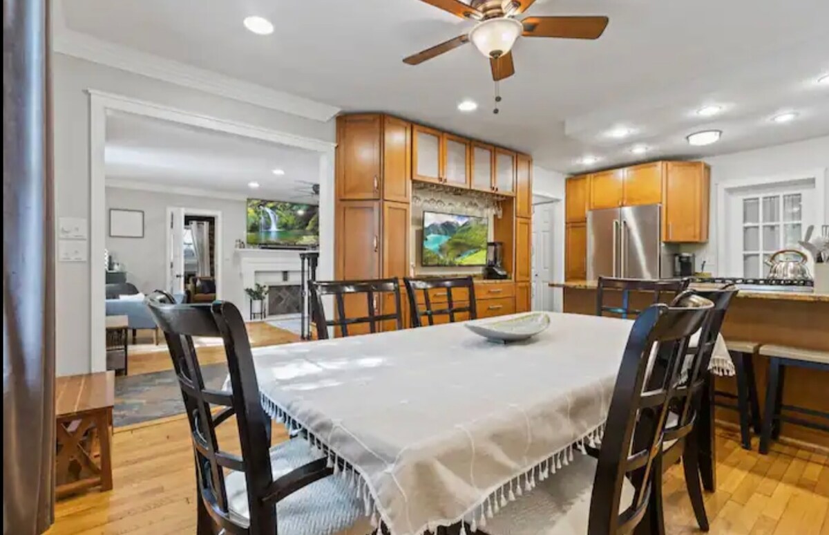 RARE FIND — Main-Level Bedroom & Bath with No Steps! Welcome to your stylish D.C. retreat! This fully renovated 5-bedroom, 4-bathroom home offers 3,500 sq ft of open-concept living, just 3 minutes from the Metro and 10 minutes from the White House. Enjoy free street parking. Perfect for families or business travelers with a main-floor bedroom, chef’s kitchen, double living rooms, fast Wi-Fi, and smart TVs. Book your stay today and experience D.C. in comfort and style.